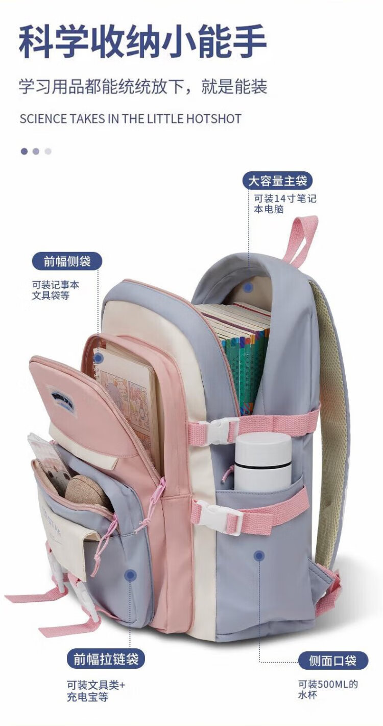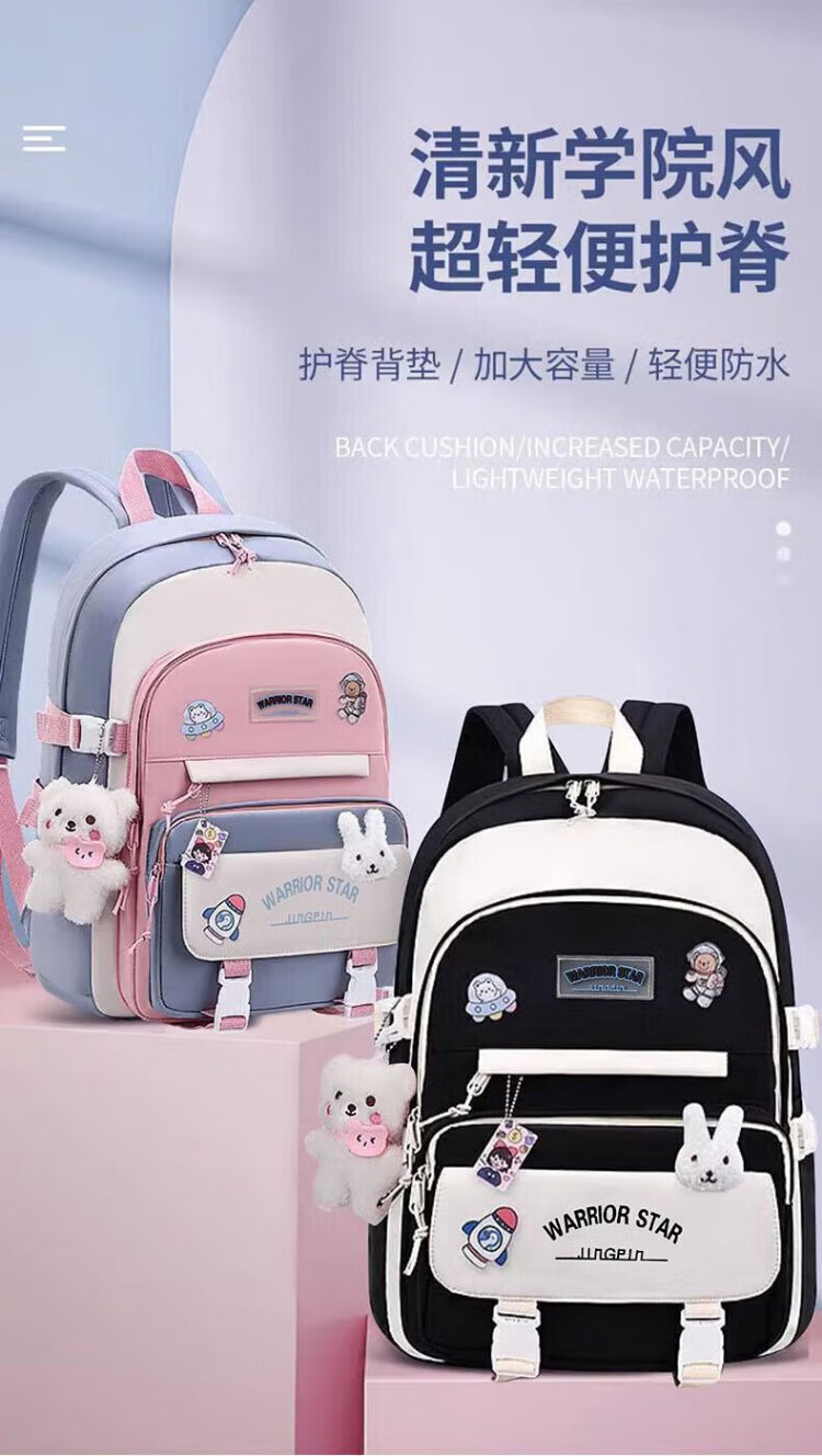 Pull-back schoolbag for girls, cute and good-looking, for fourth to sixth grade primary school students, lightweight backpack for junior and senior high school students.