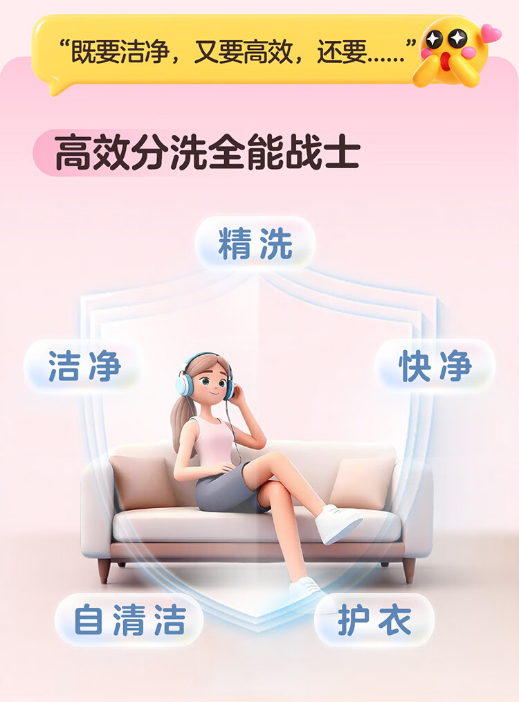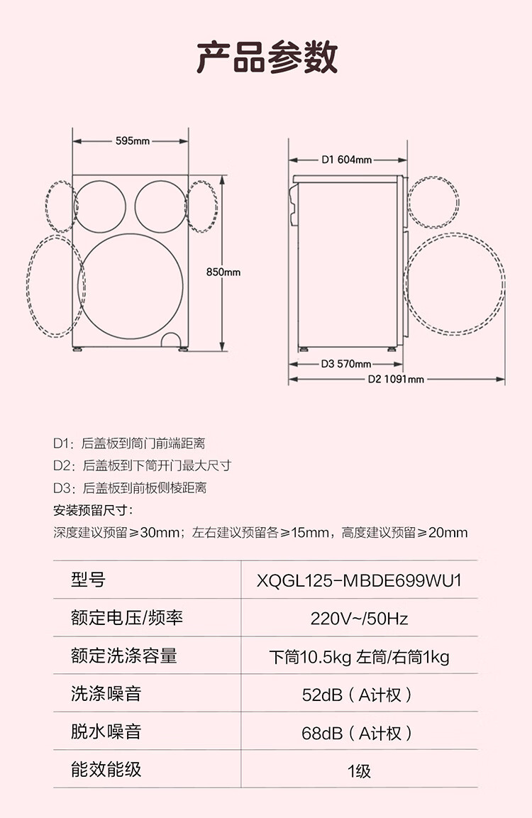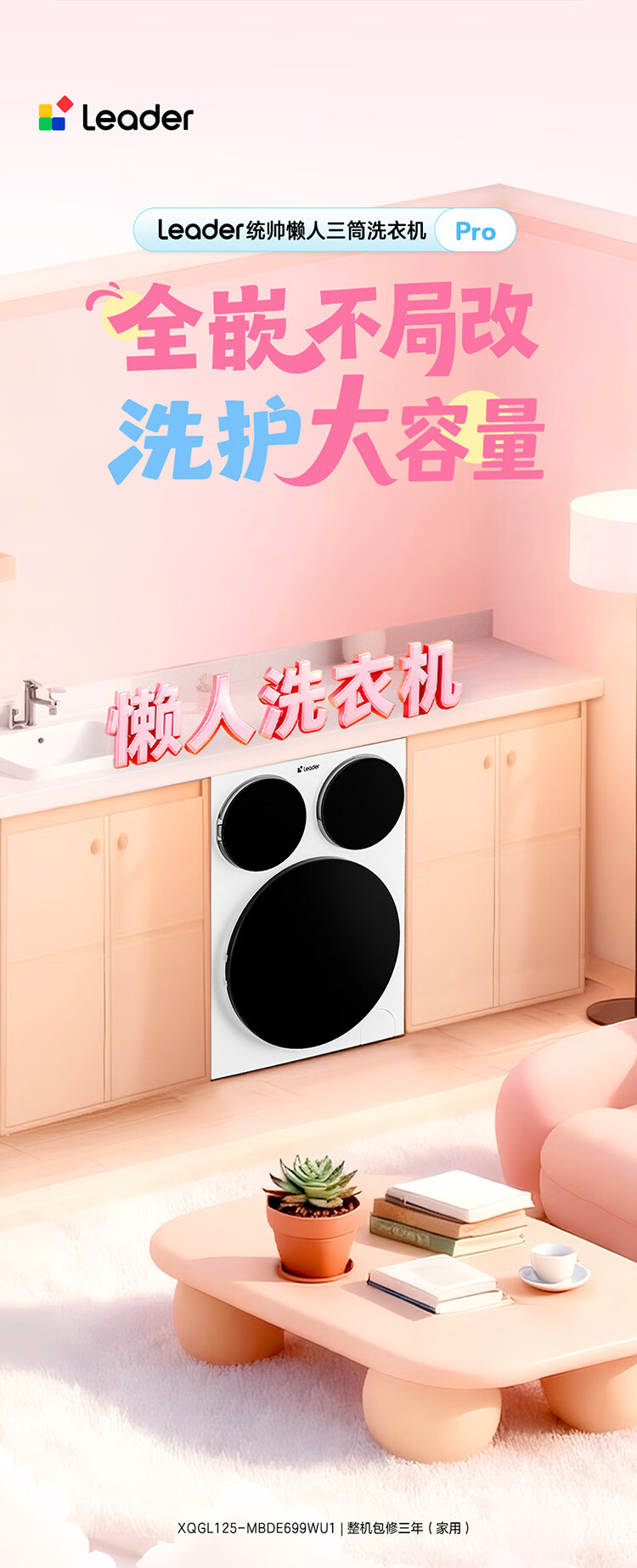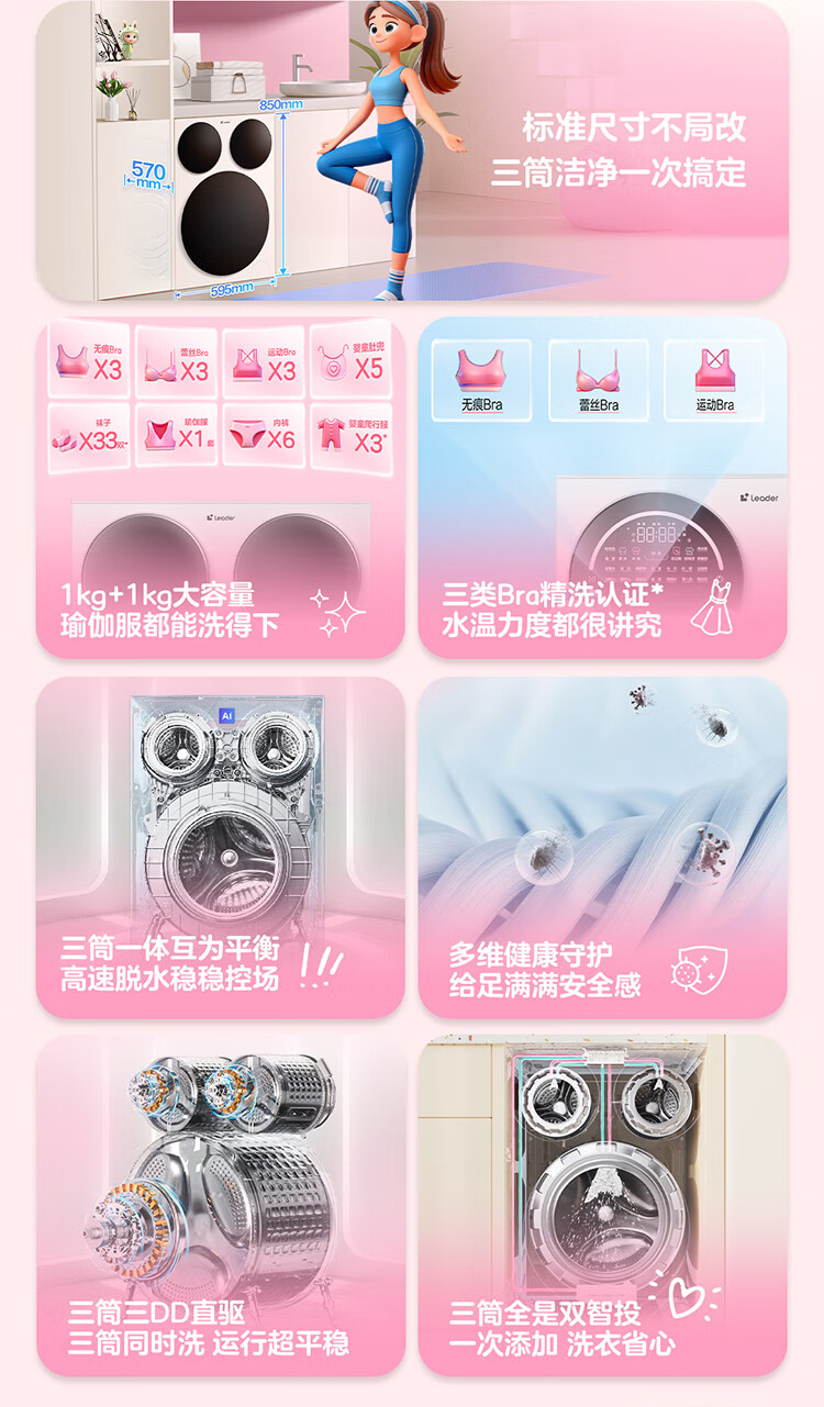 Lazy three-tub washing machine Pro produced by Leader Haier, fully automatic direct drive for underwear washing, three barrels, replacement subsidy 12.5 kg, Lin Gaoyuan XQGL125-MBDE699WU1