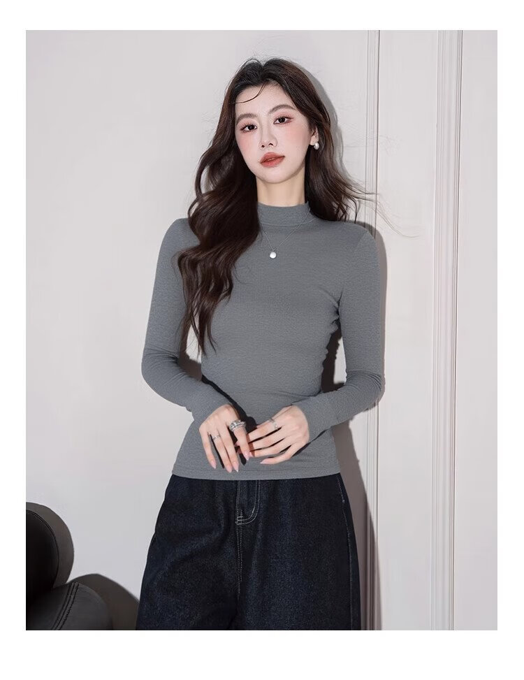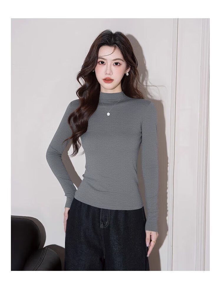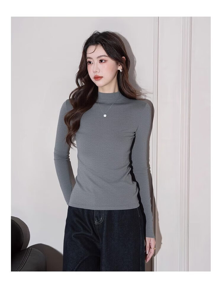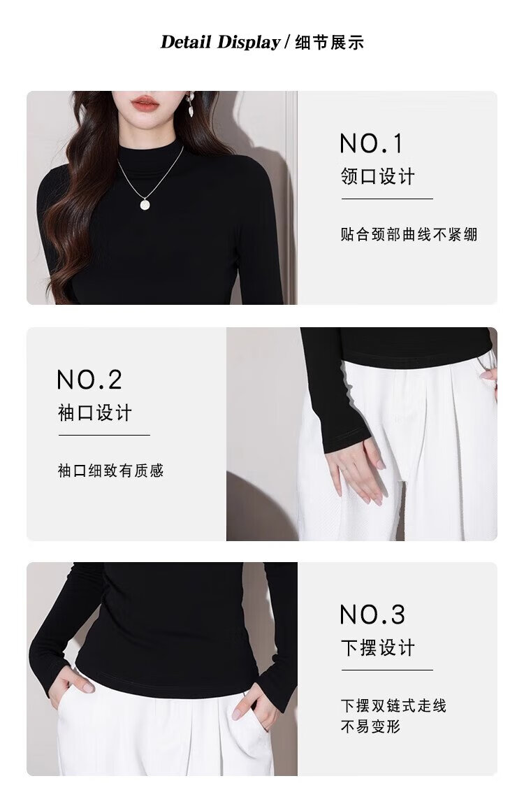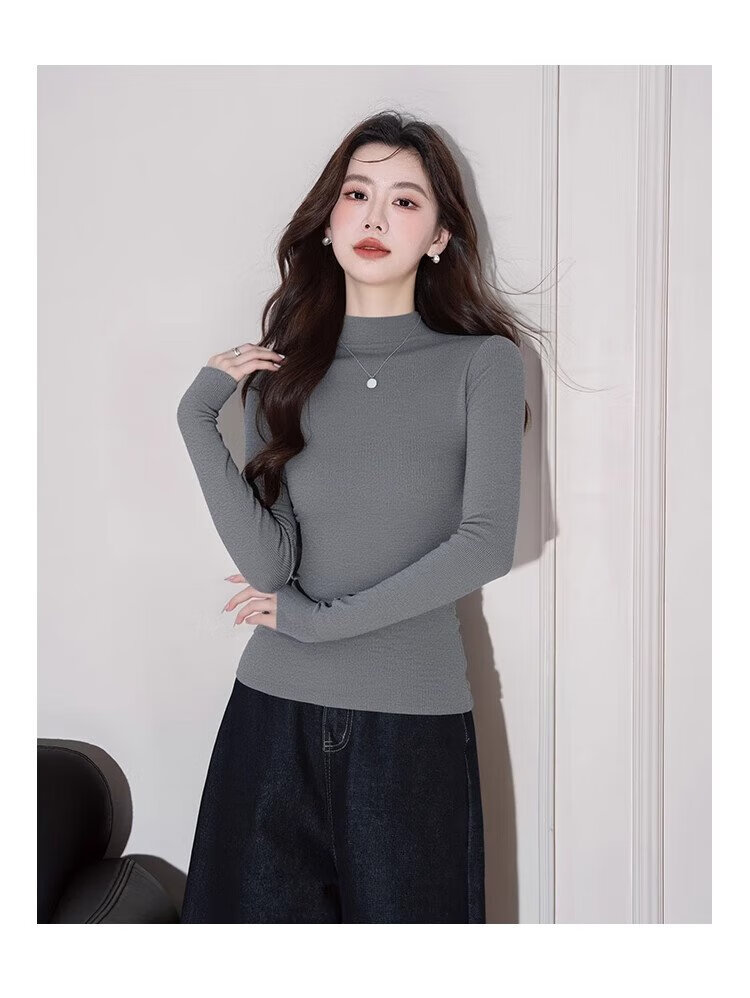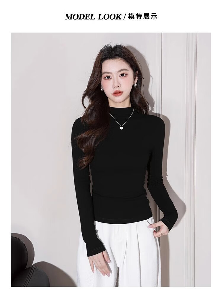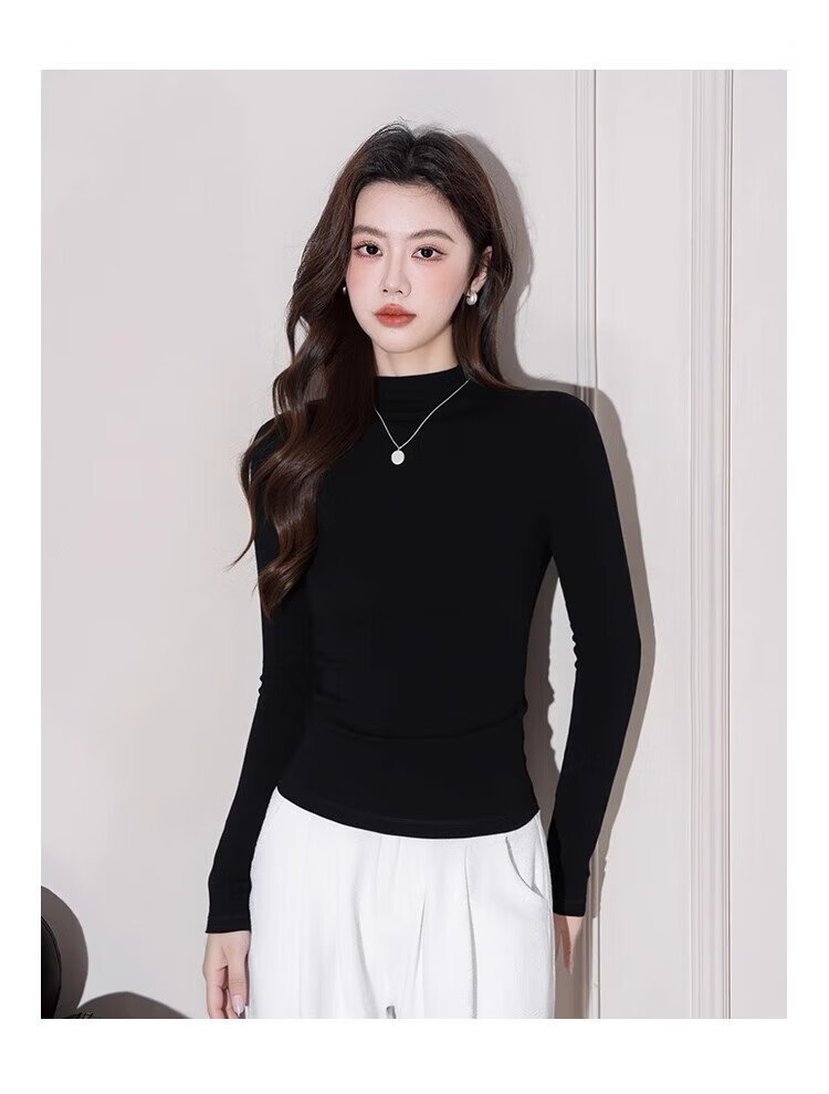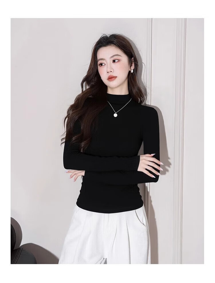 Farewell half turtleneck bottoming shirt for women, new autumn and winter style inner layer, thin slim fit long-sleeved knitted top, black S