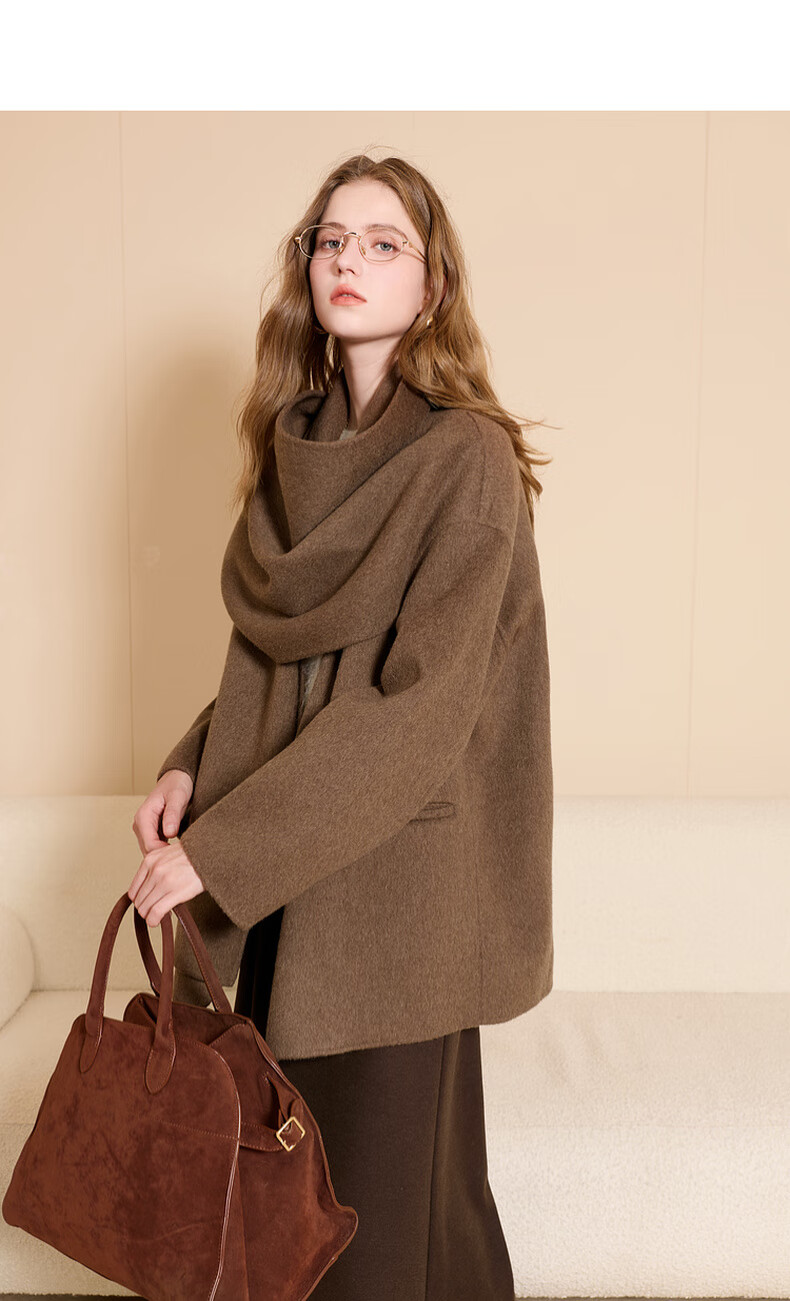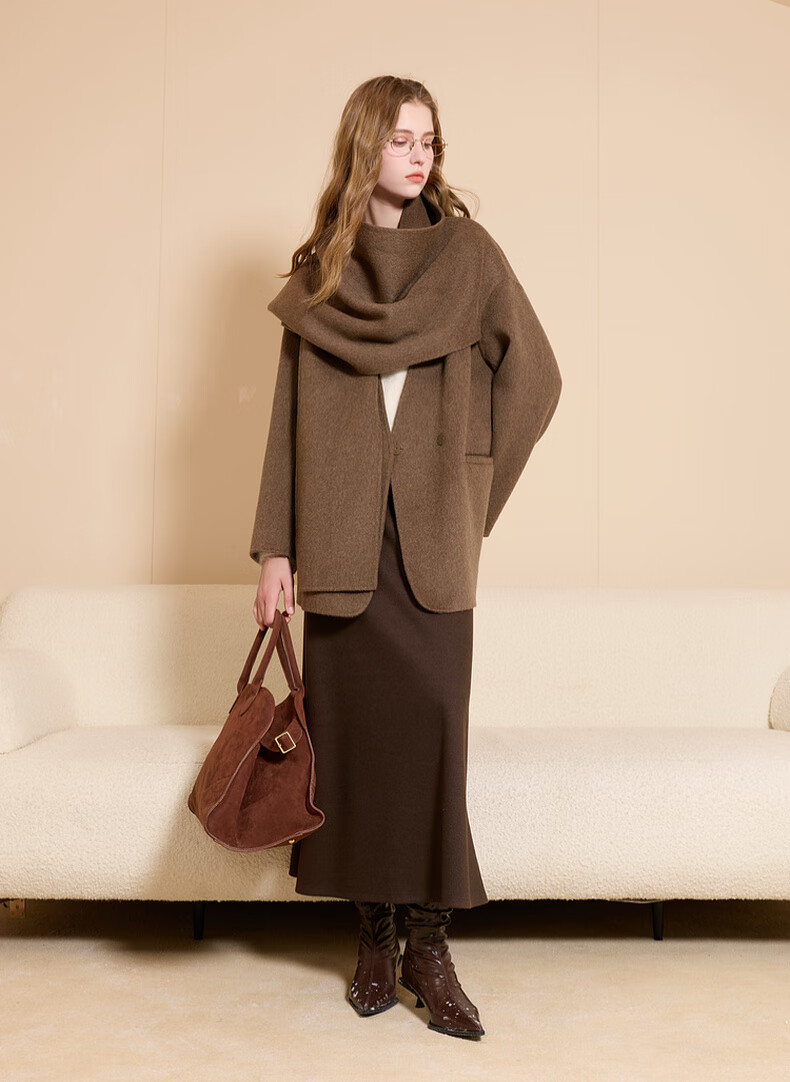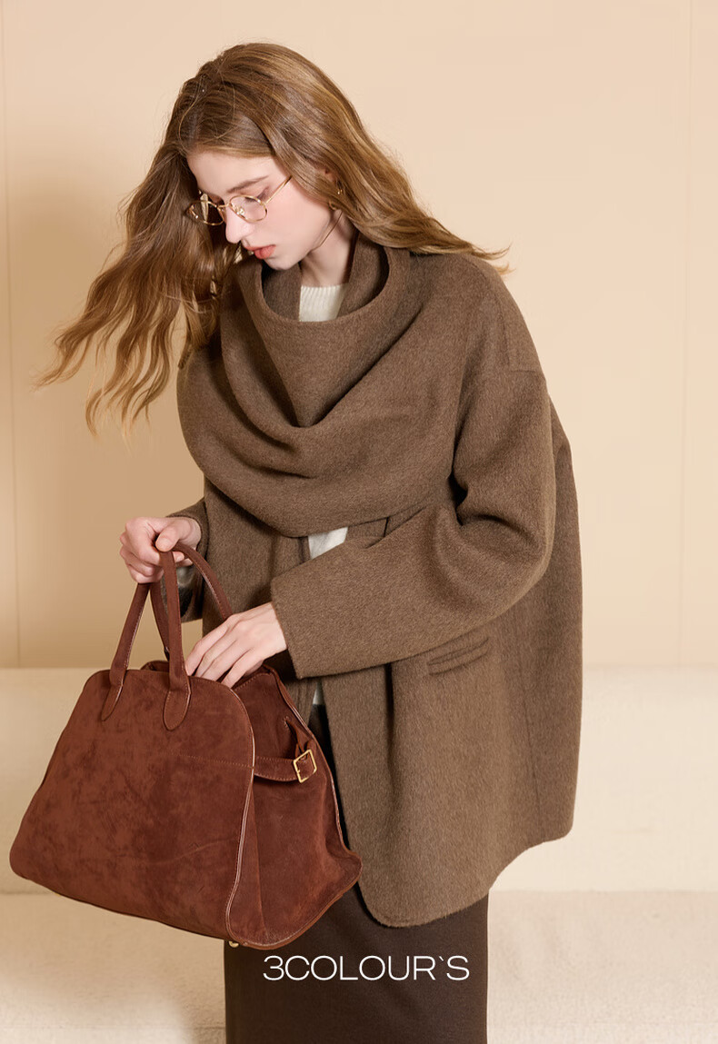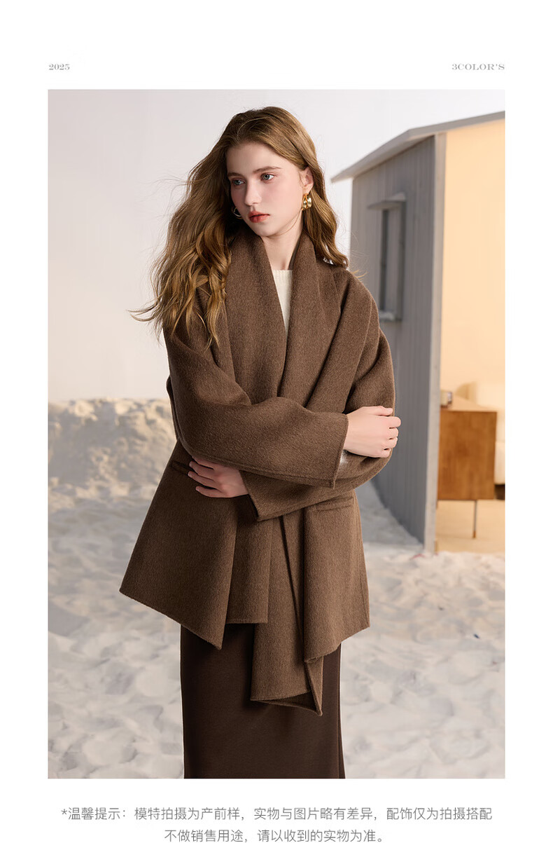 Tricolor 100 sheep wool 2025 winter new double-sided woolen coat scarf woolen jacket S