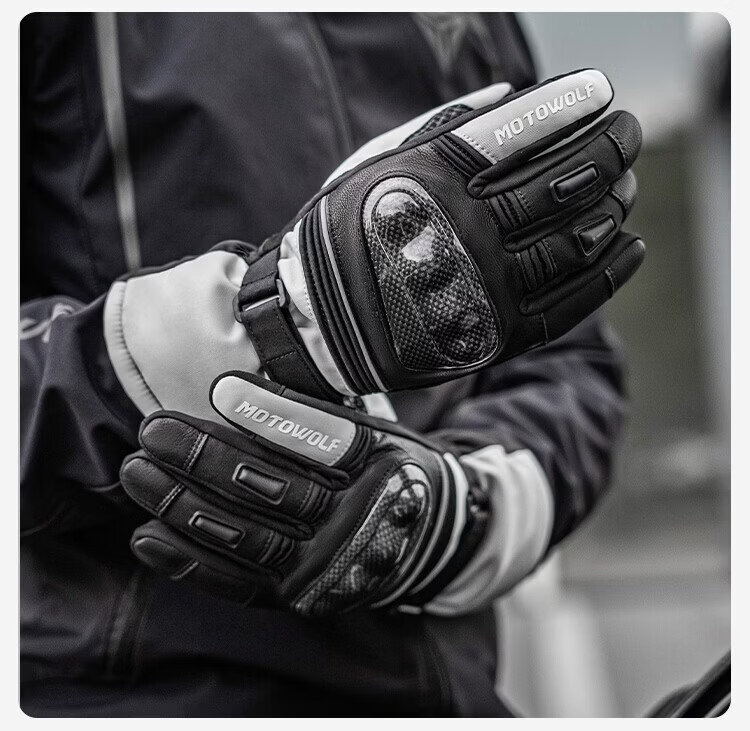 Modo Wolf Winter Motorcycle Gloves Thickened and Velvet Warm, Waterproof, Windproof and Fallproof Carbon Fiber Shell Motorcycle Riding Equipment