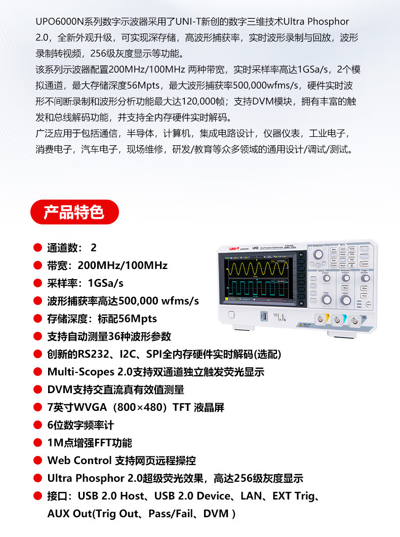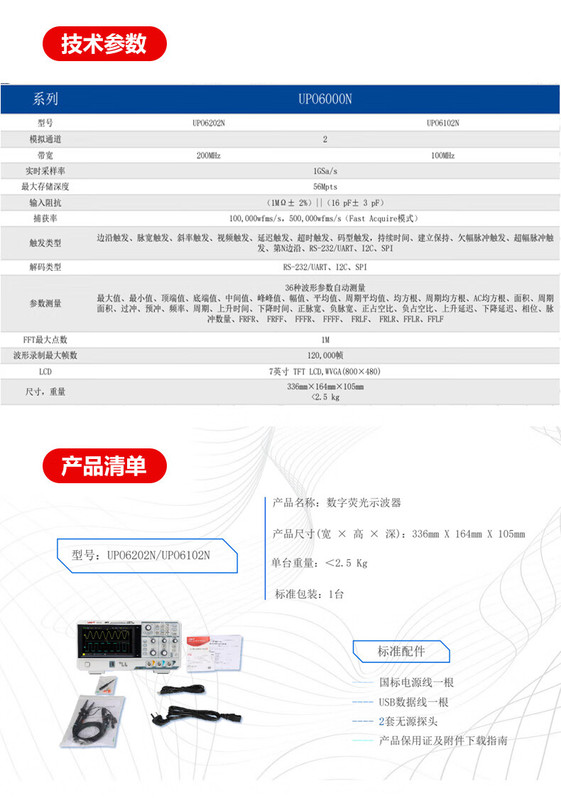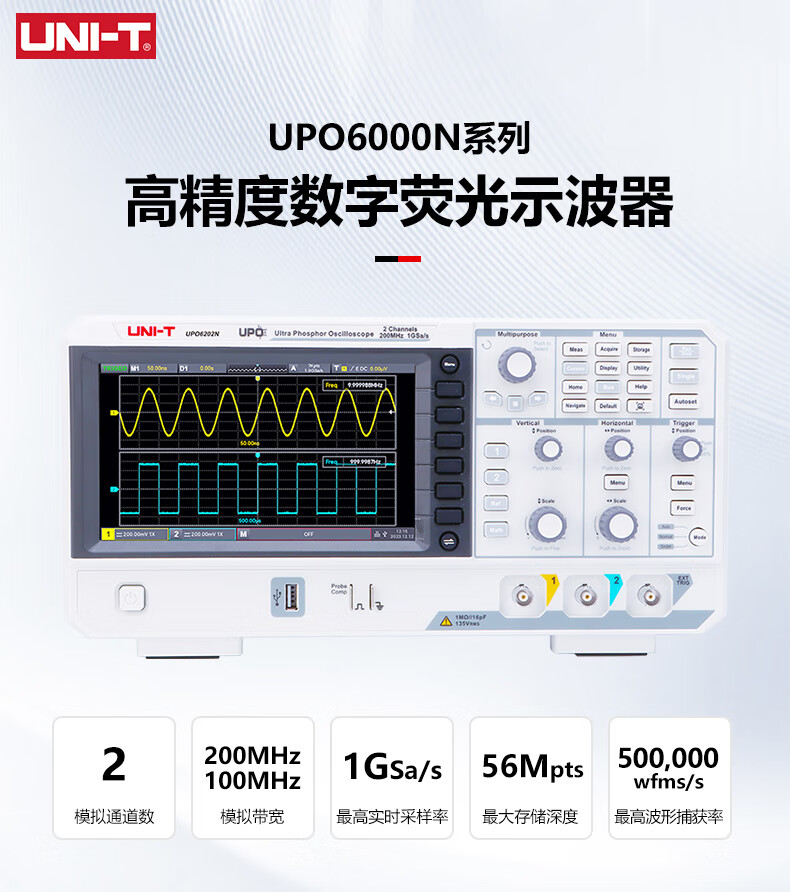 Unilever Industrial Products UPO6102N digital fluorescence oscilloscope high-precision digital oscilloscope dual-channel 100M bandwidth