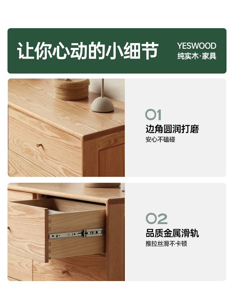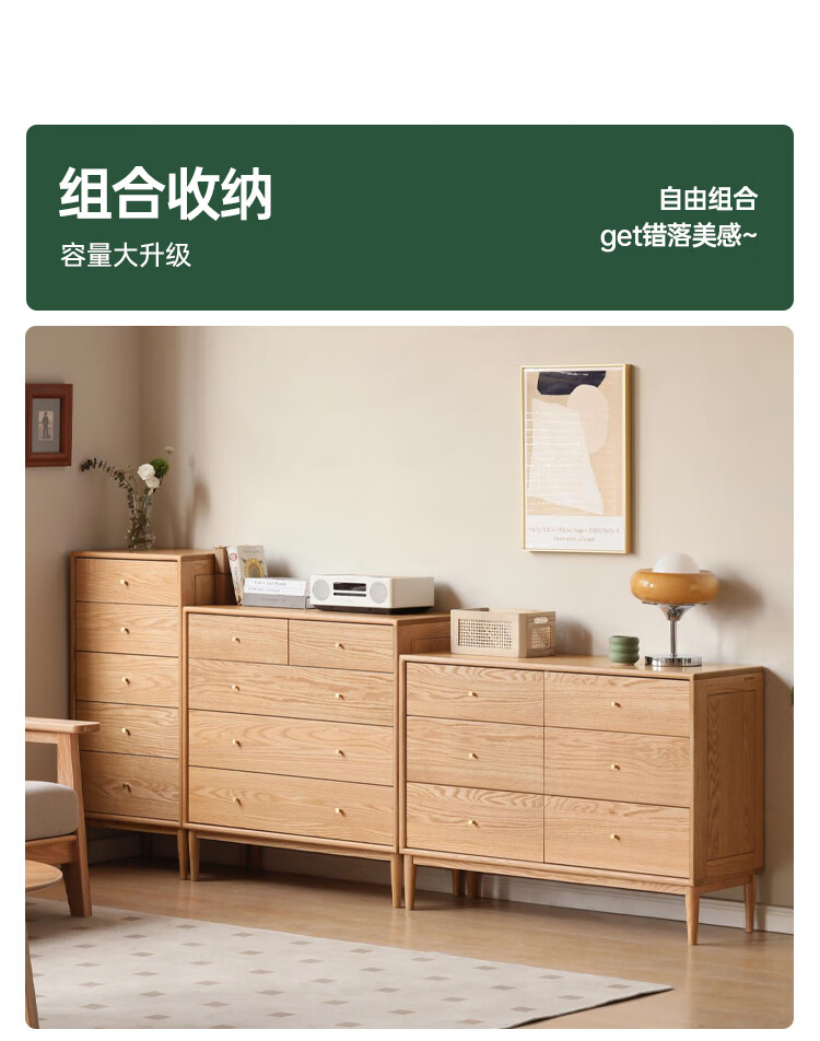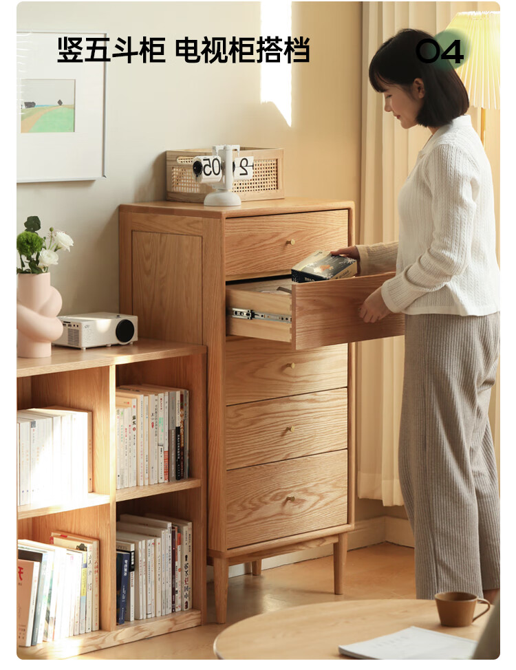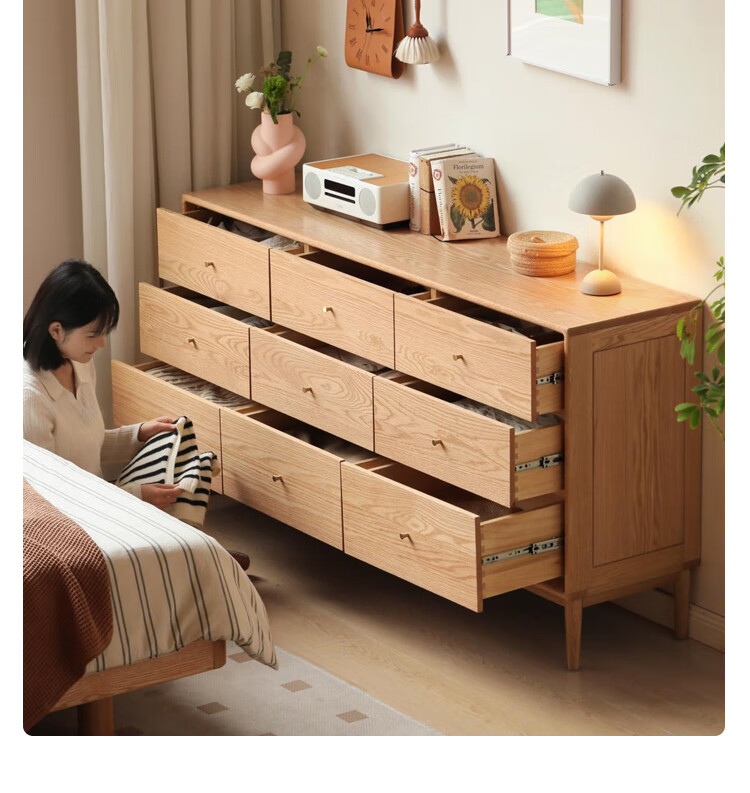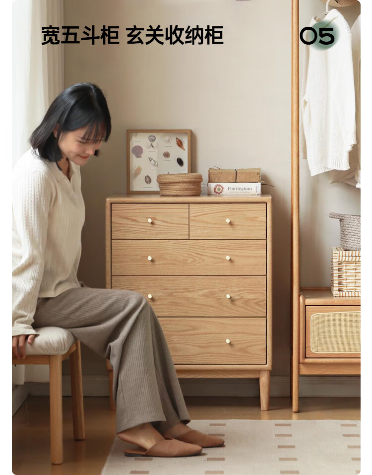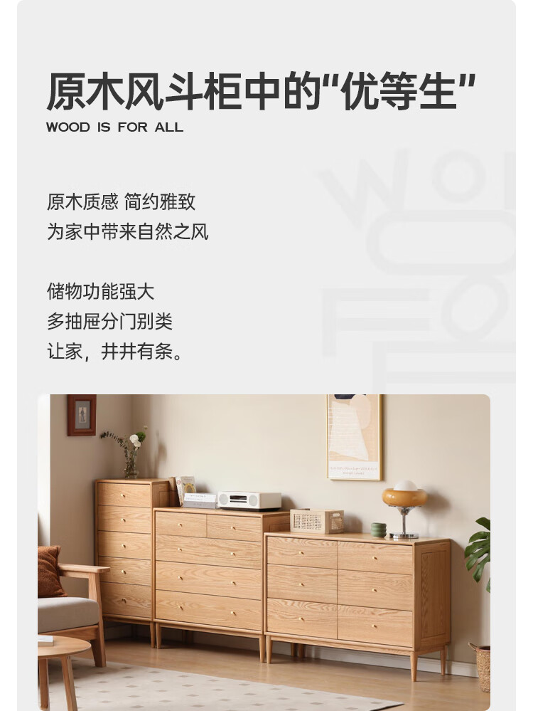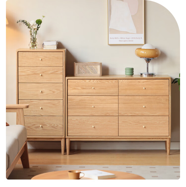 Genji Muyu Solid Wood Chest of Drawers Furniture Simple Drawer Chest Log Color Nordic Bedroom 0.91 Meter Chest of Drawers - Metal Slide