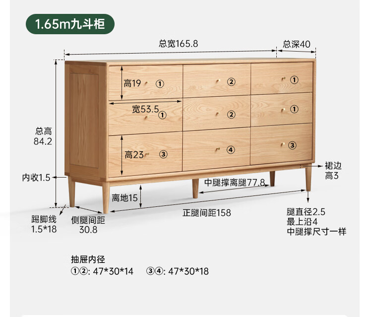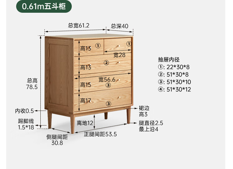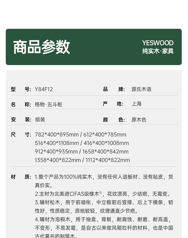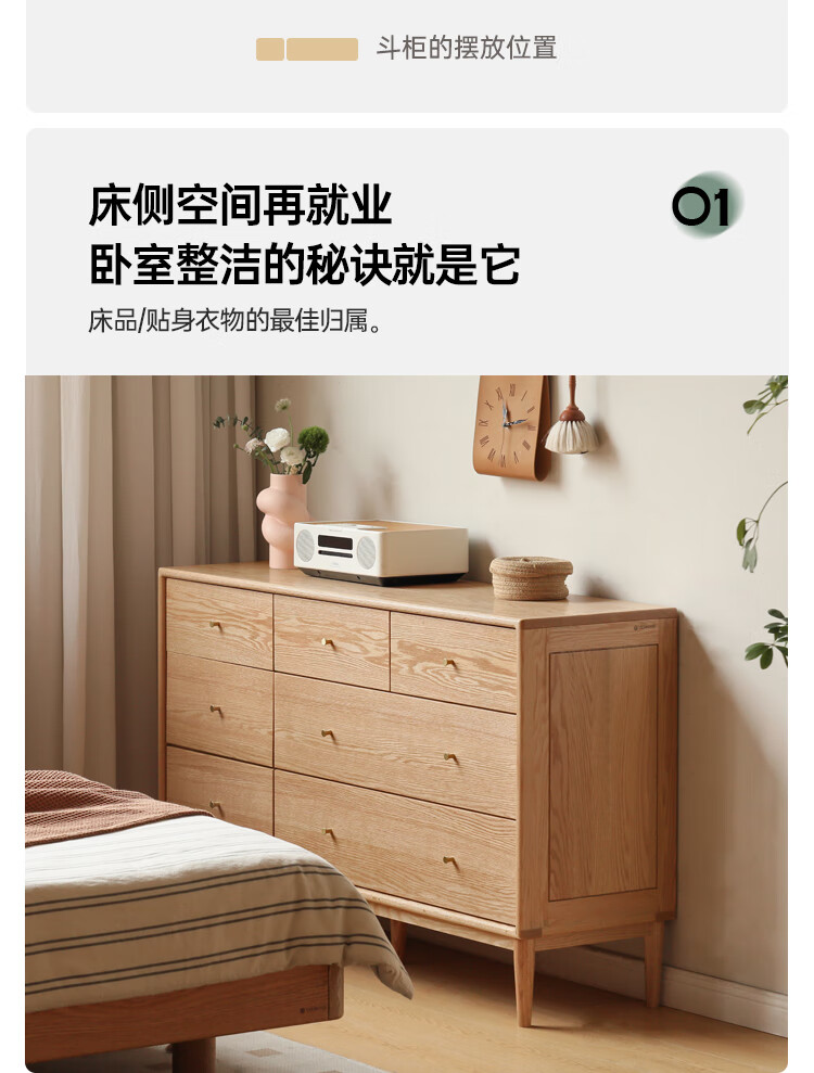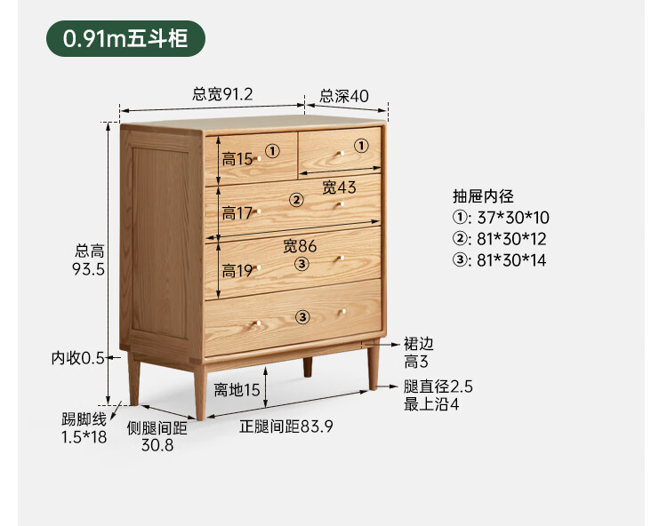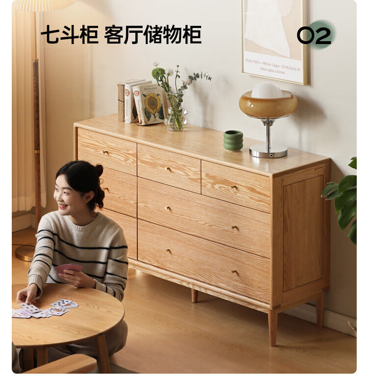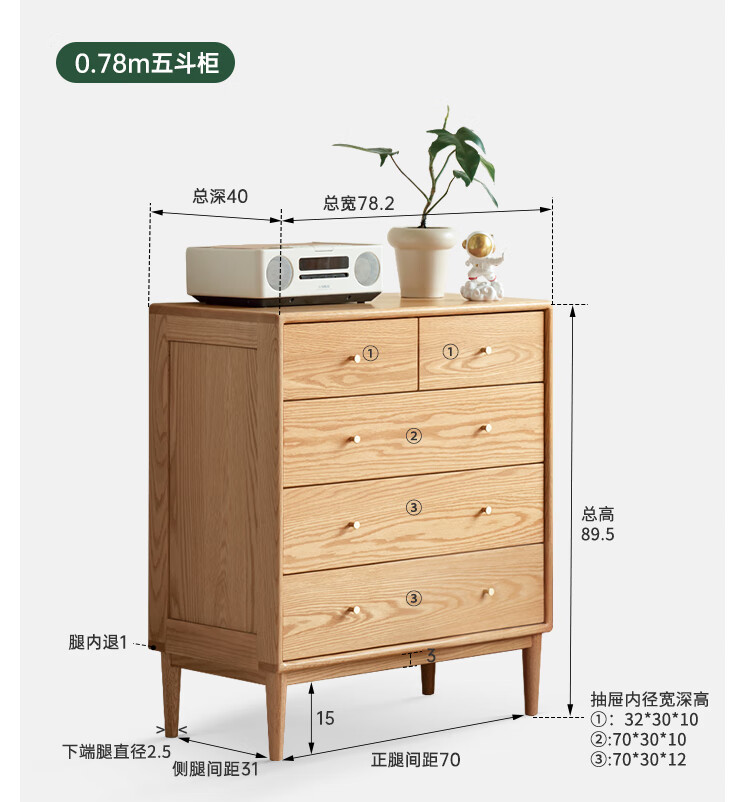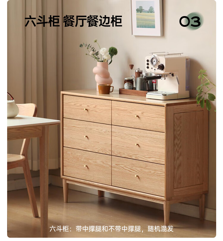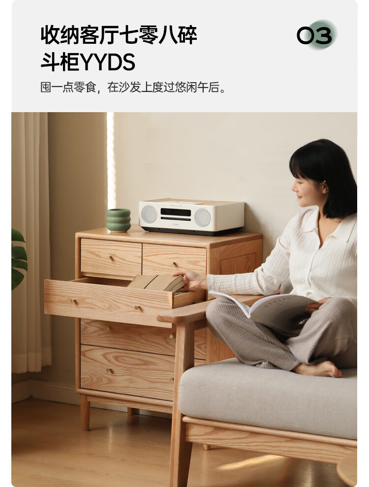 Genji Muyu Solid Wood Chest of Drawers Furniture Simple Drawer Chest Log Color Nordic Bedroom 0.91 Meter Chest of Drawers - Metal Slide