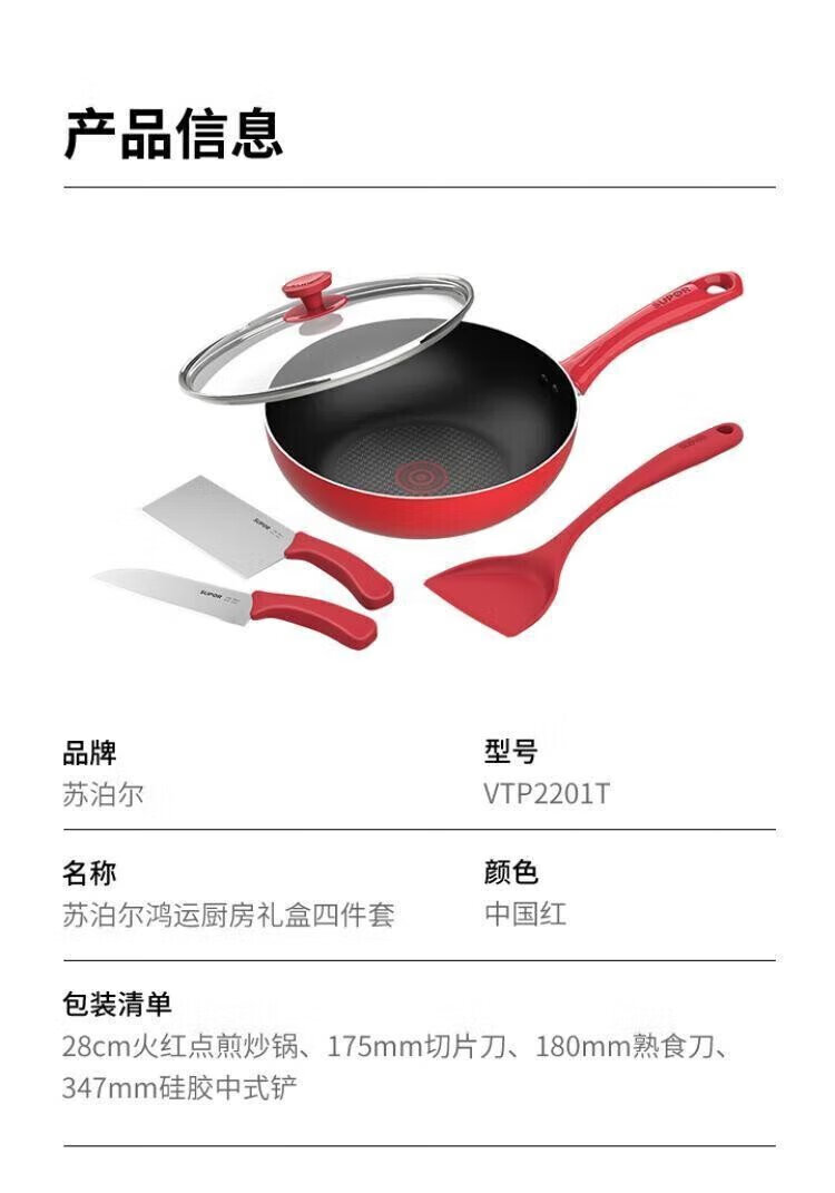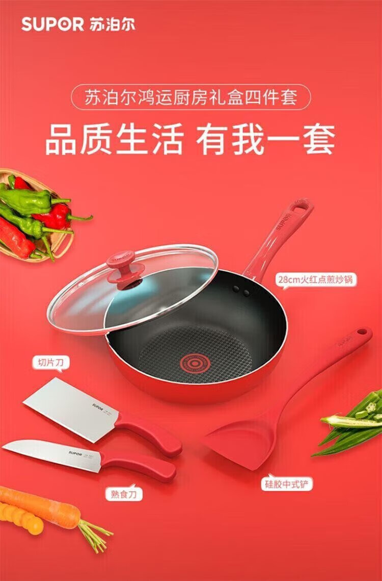 SUPOR Lucky Kitchen Gift Box Four-piece Set Frying Wok Slicing Knife Deli Knife Silicone Spatula VTP2201T