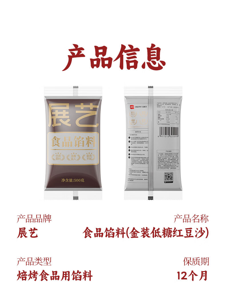 Zhanyi Gold Low Sugar Red Bean Paste 500g Red Bean Crisp Mochi Bun Filling Pastry Heart Baked Egg Yolk Crispy Rice Ball Filling
