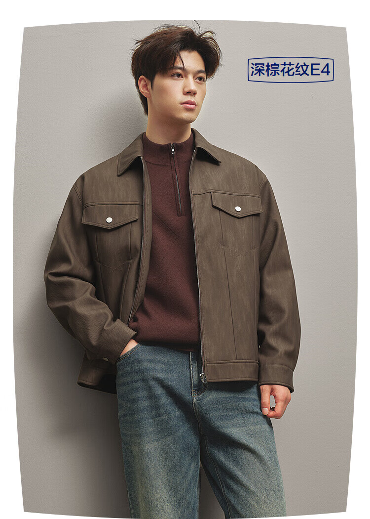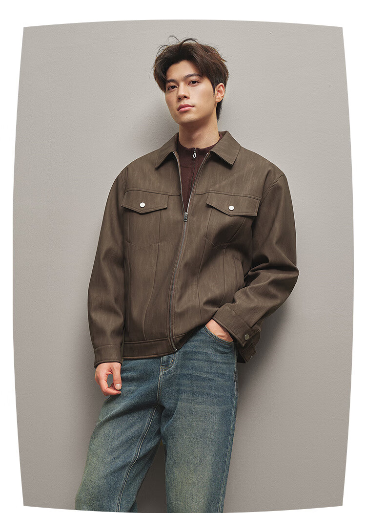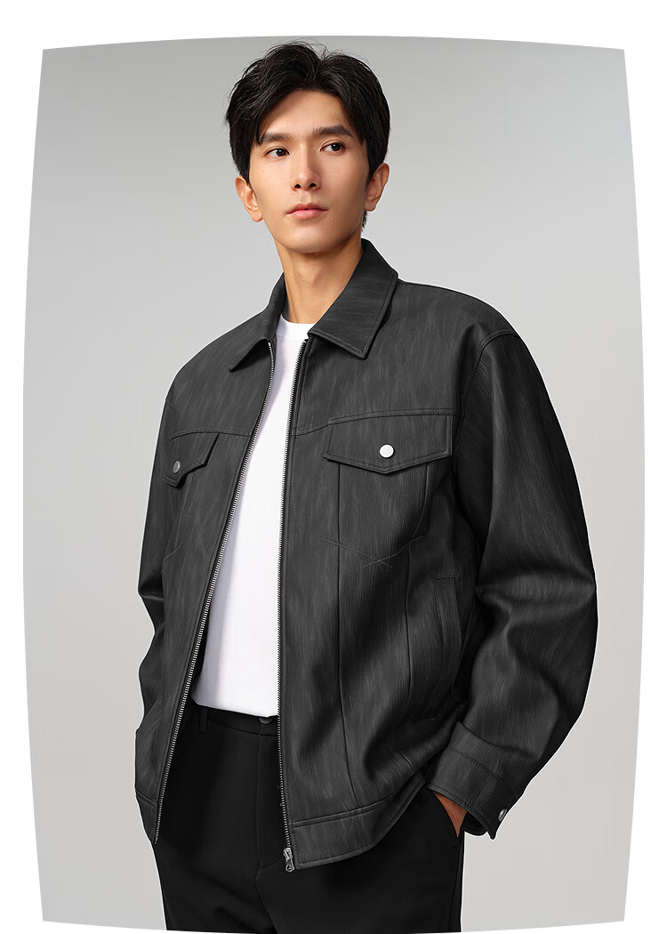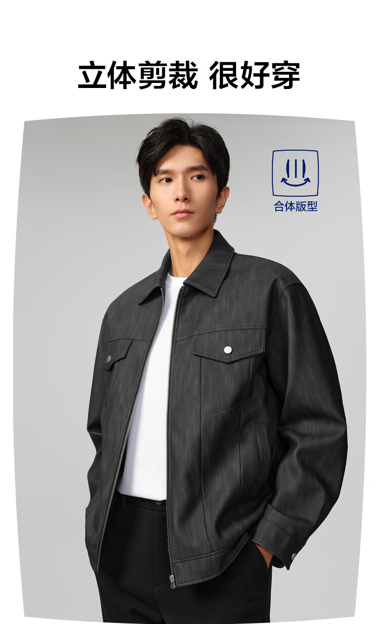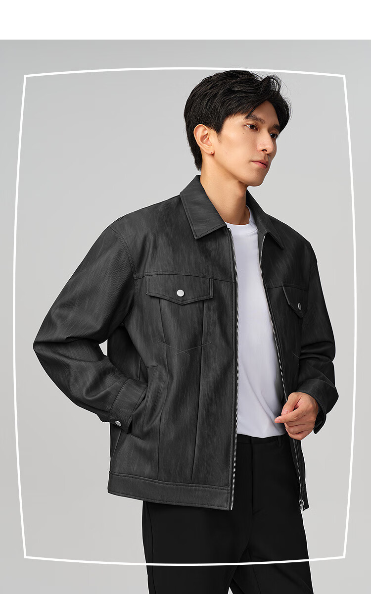 HLA Hailan House Jacket Men's 25 Classic Lapel Casual PU Leather Jacket Men's Autumn