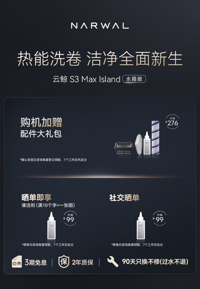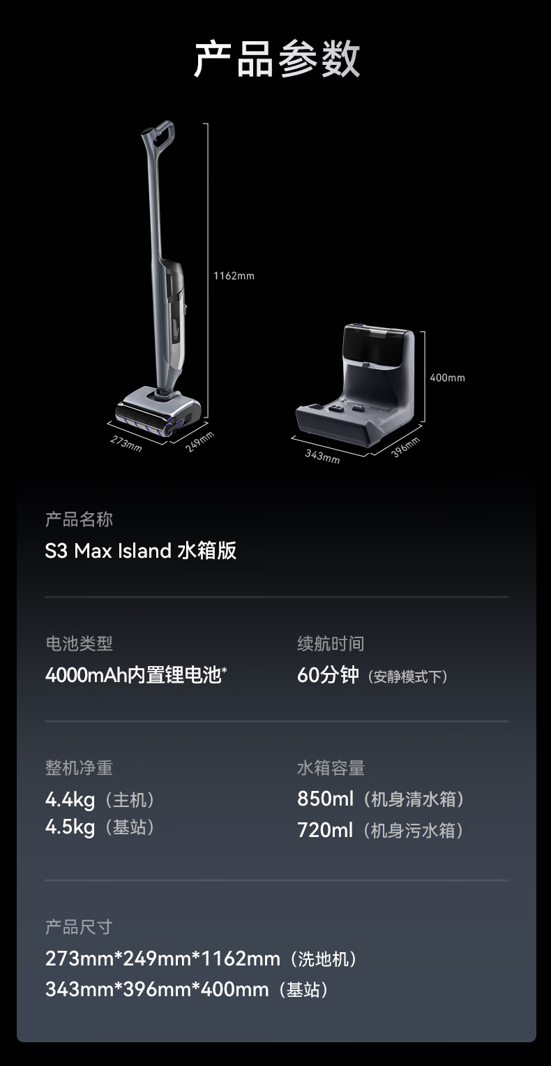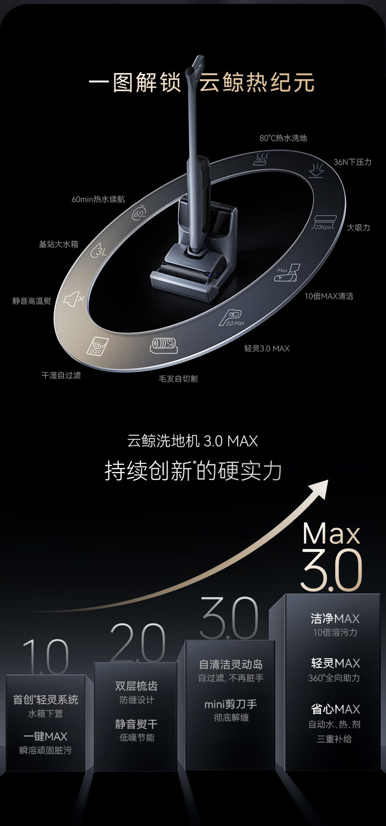 Cloud Whale Floor Scrubber S3MaxIsland 80 Hot Living Water Self-replenishing Hot Water Base Station Fixed-point Dirty Washing Long-lasting Suction, Washing and Mopping Integrated Sweeping and Mopping Machine