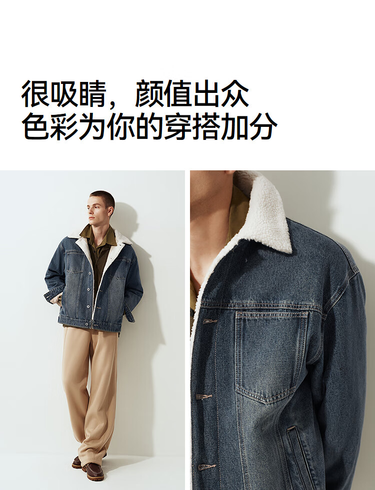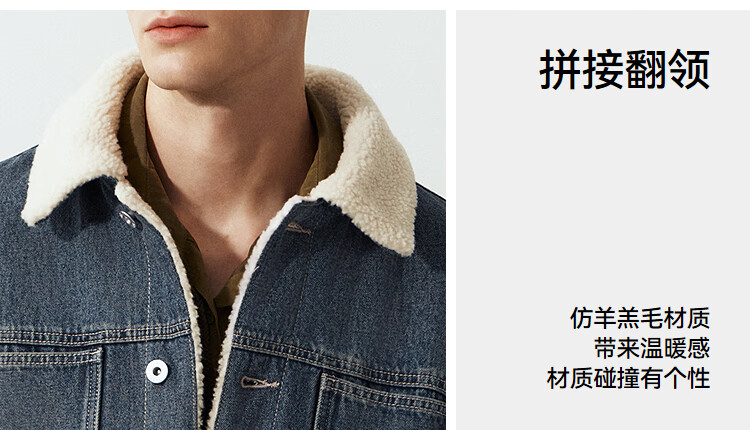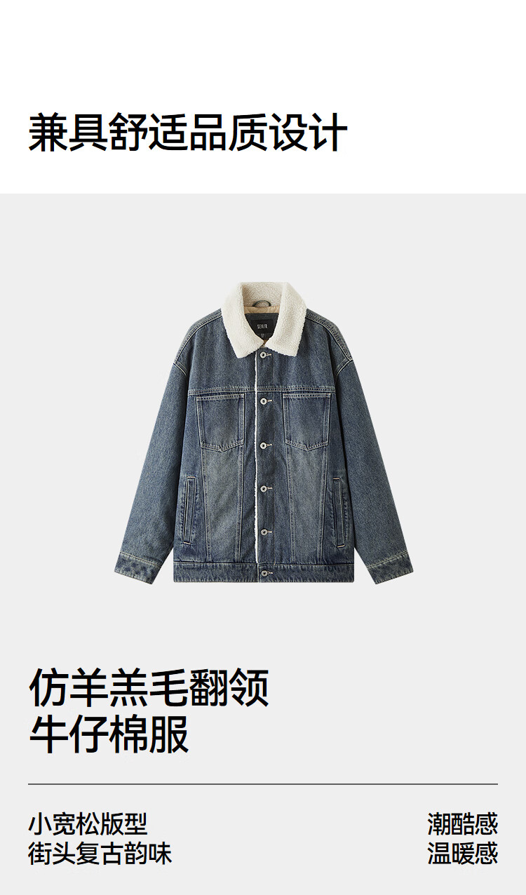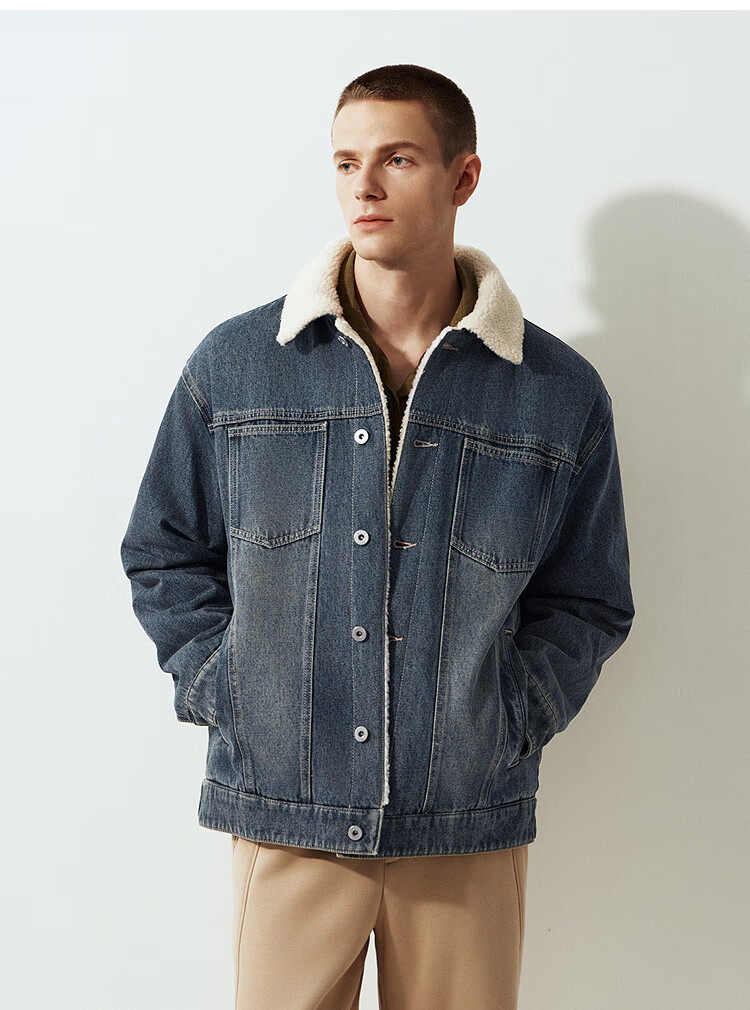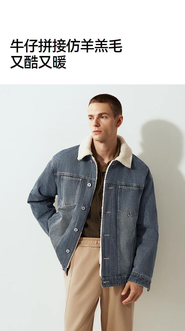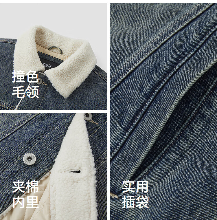 Semir Denim Jacket Men's Winter Cotton Clothes 25 Street Retro Distressed Imitation Lamb Wool Lapel Jacket Trendy 109725108110