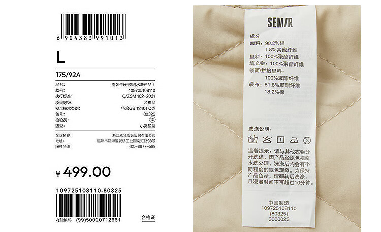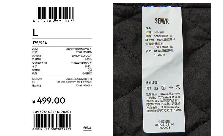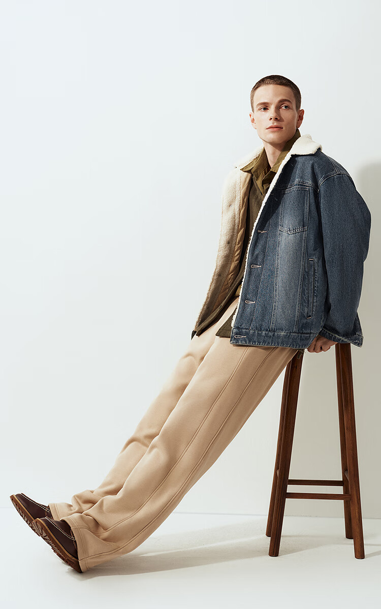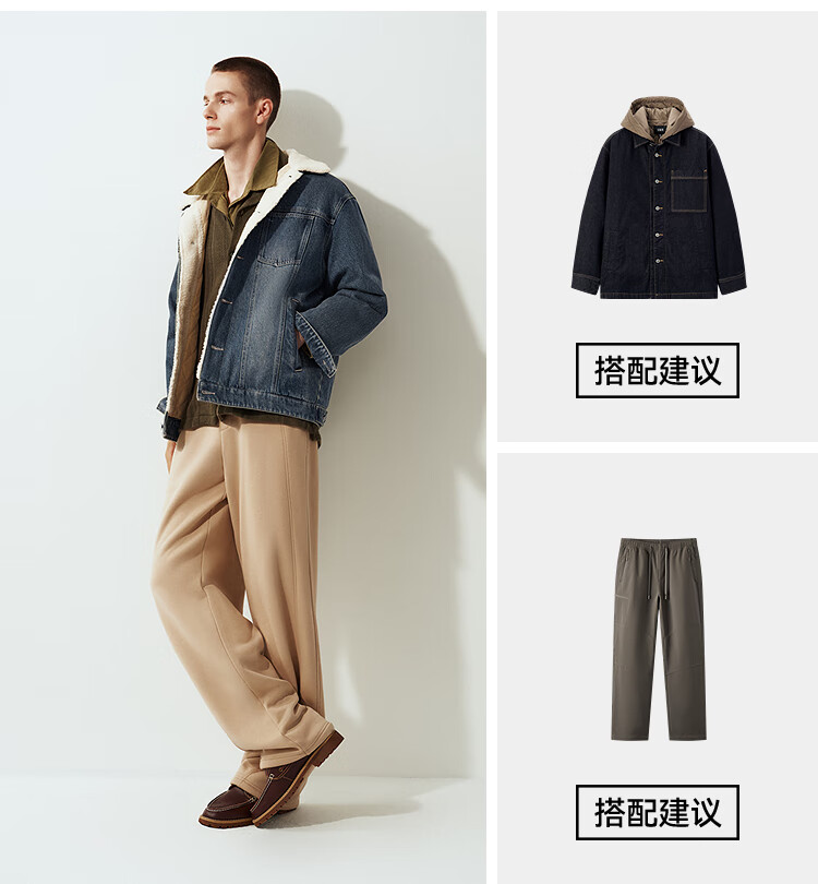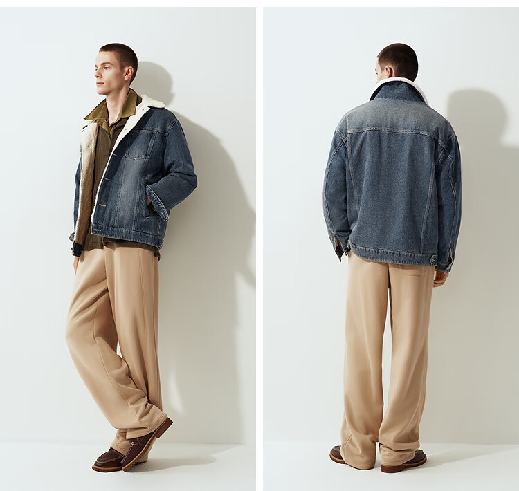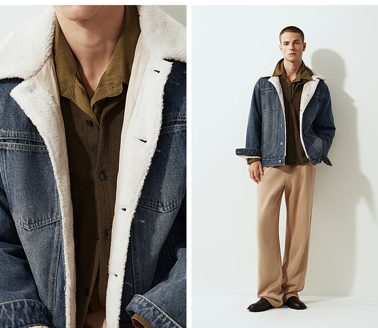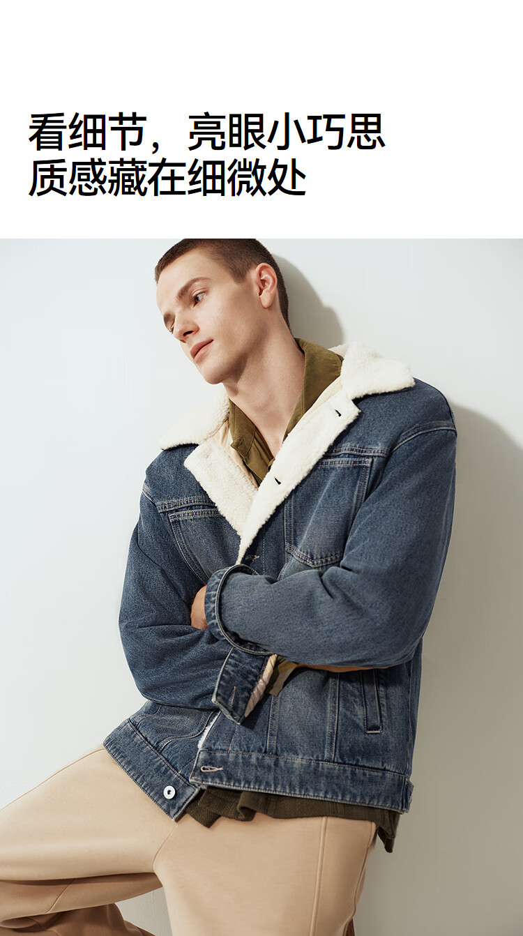 Semir Denim Jacket Men's Winter Cotton Clothes 25 Street Retro Distressed Imitation Lamb Wool Lapel Jacket Trendy 109725108110