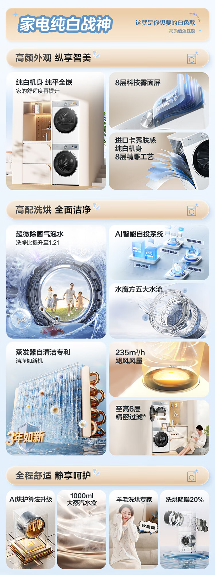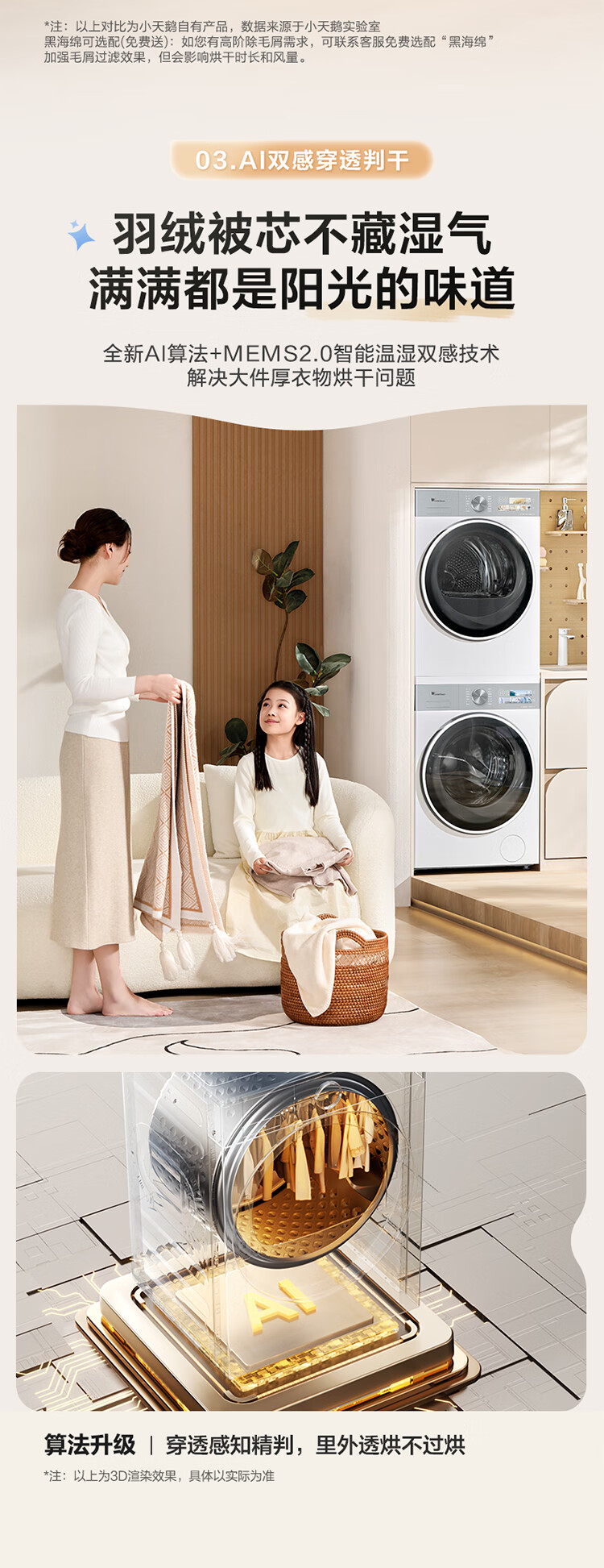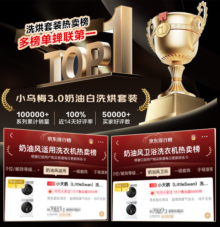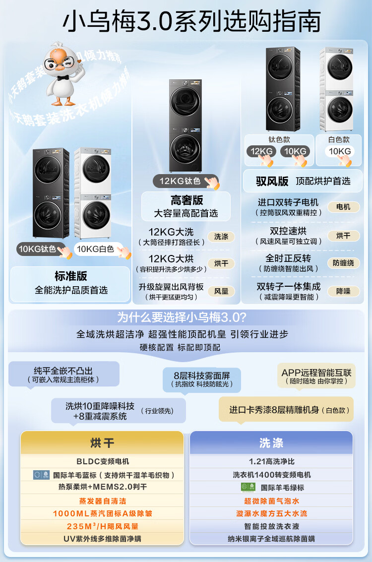 LittleSwan Xiaowumei 3.0 cream white washing and drying set 10KG drum washing machine fully automatic + variable frequency heat pump dryer steam care VE40W + VE40W national subsidy