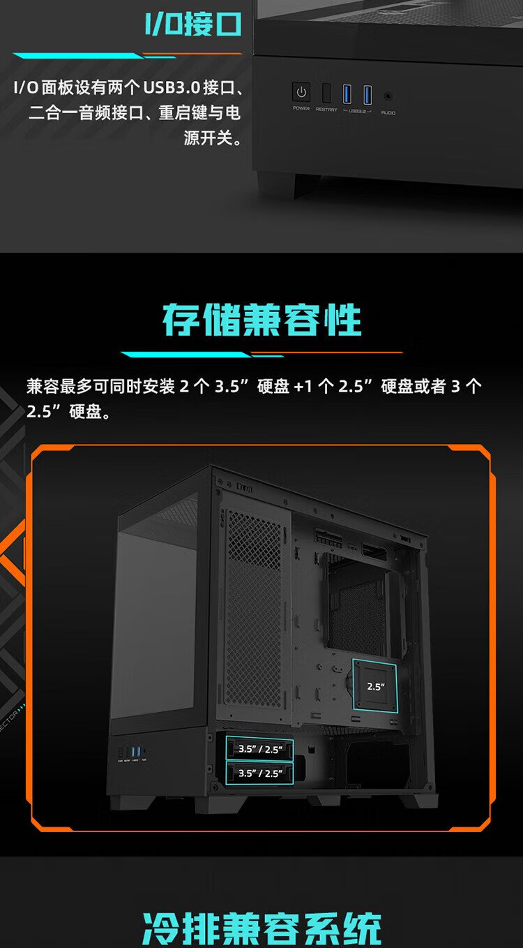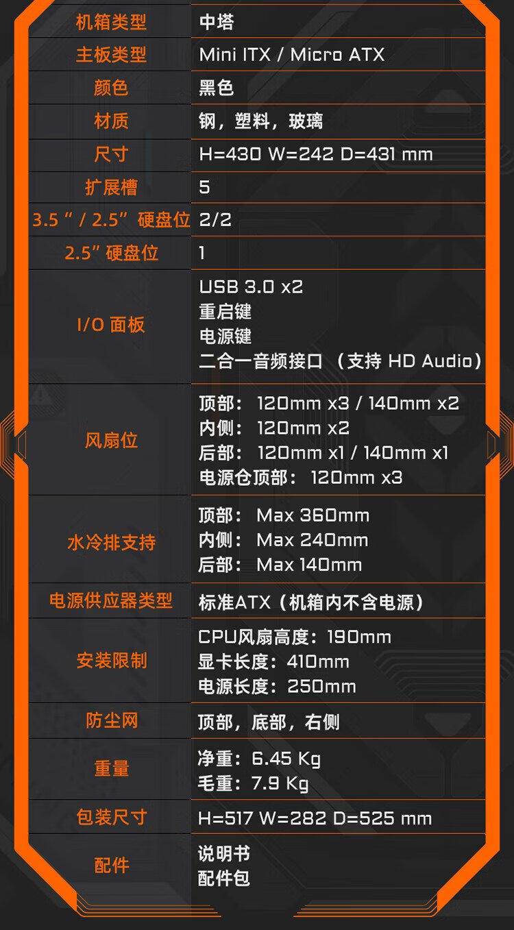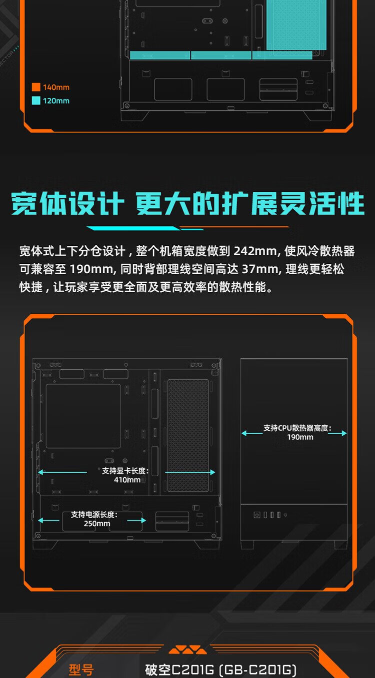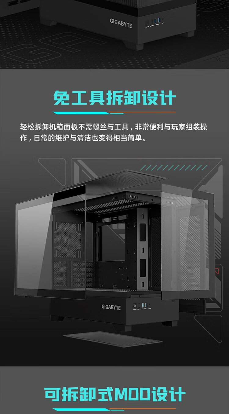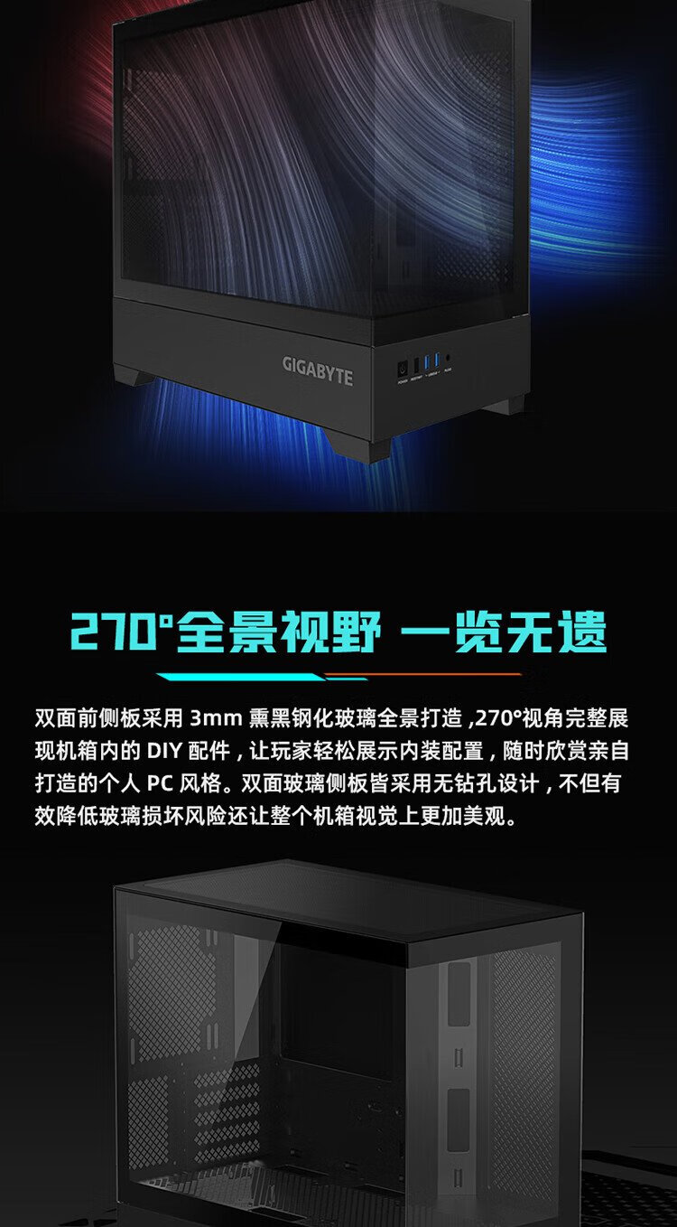 Quasi-new product GIGABYTE C201G panoramic upper and lower compartment chassis, blackened tempered glass side transparent, compatible with top 360/side 240 water cooling, quick-release dust filter, black M-ATX