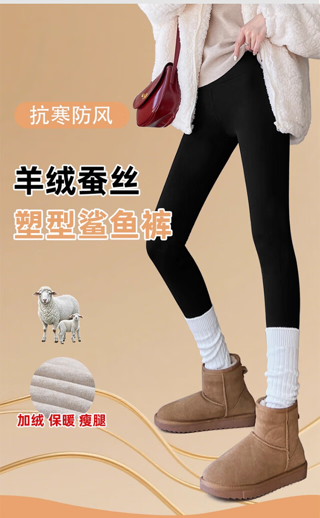 Langsha Cashmere Silk Shark Pants Women's Outerwear Autumn and Winter 2025 New Warm Cotton Pants High Waist Velvet Thickened Leggings
