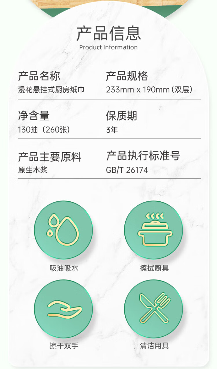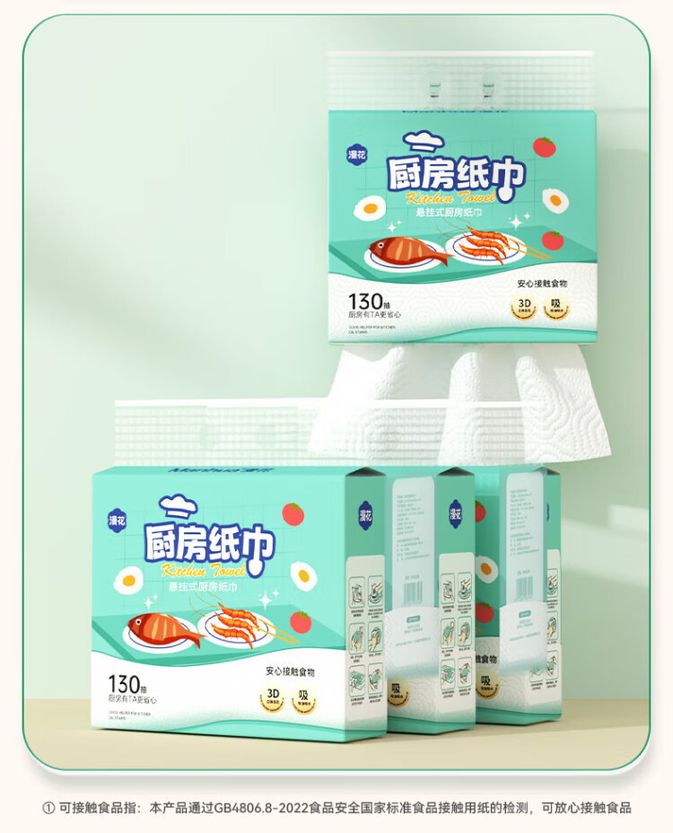 Manhua hanging kitchen paper towels 130 pumps * 10 bags full box can directly contact food, absorb oil and water, large package size