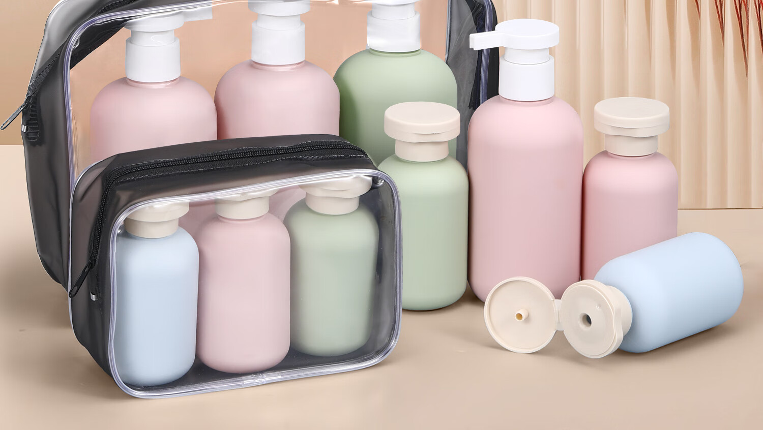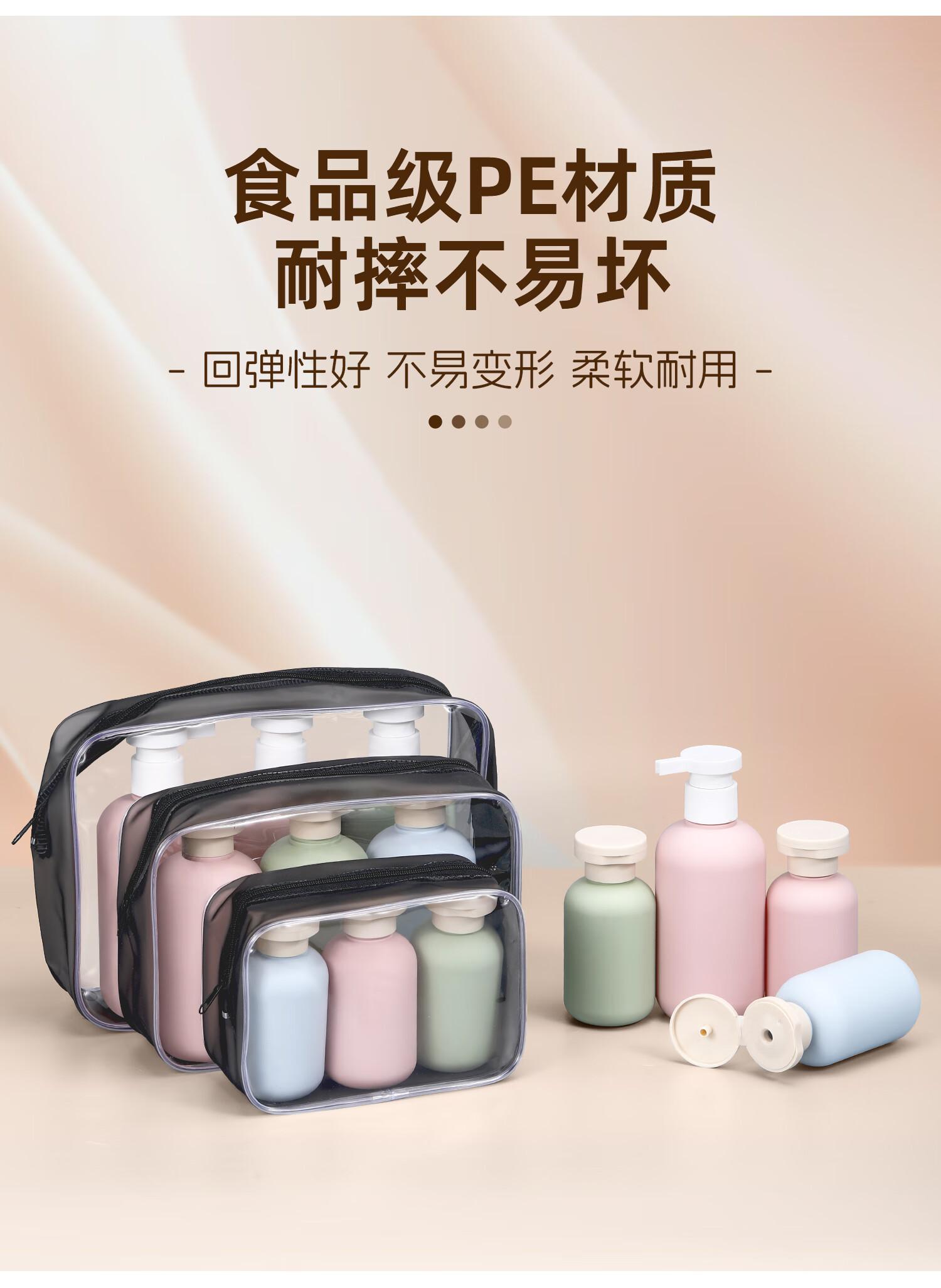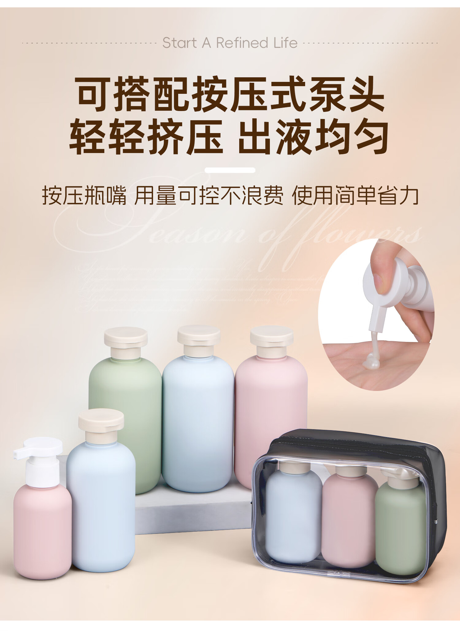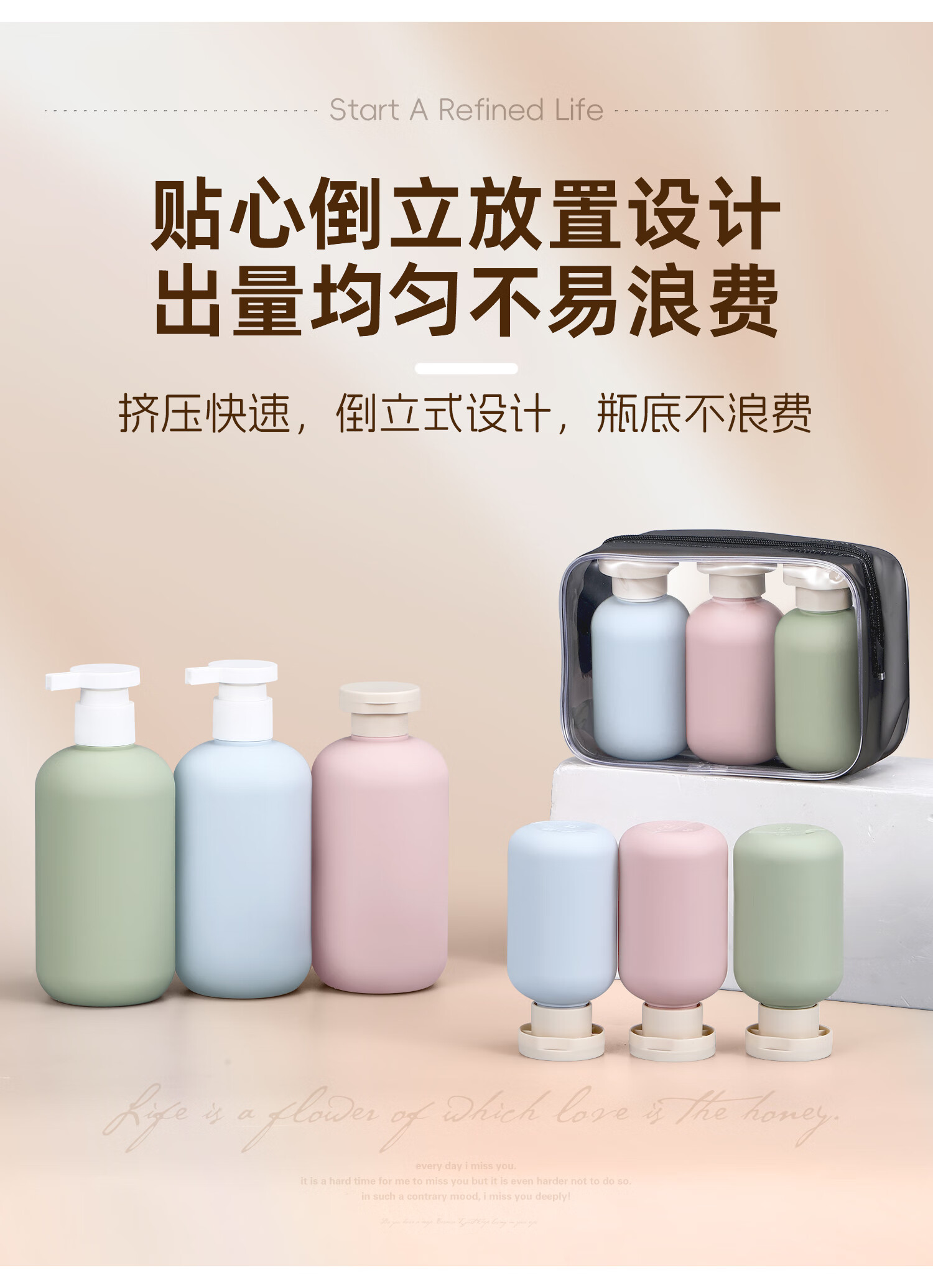 Metasequoia Travel Portable Shampoo Shower Gel Dispensing Bottle Press Empty Bottle Toiletries Travel Dispensing Bottle (Pink Bottle + Green Bottle + Blue Bottle + Storage Bag)