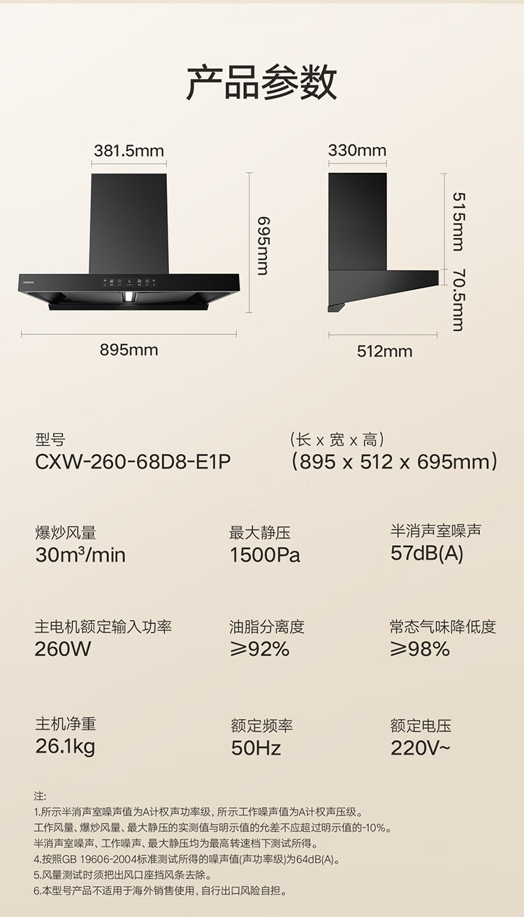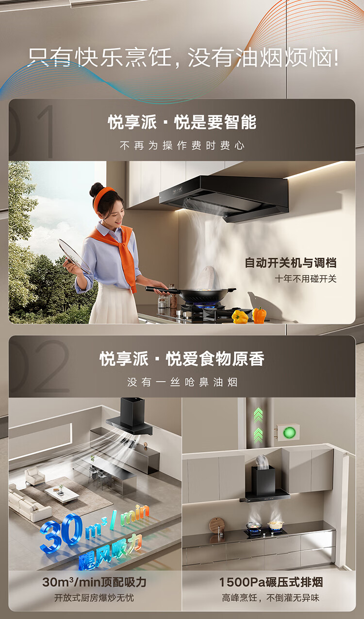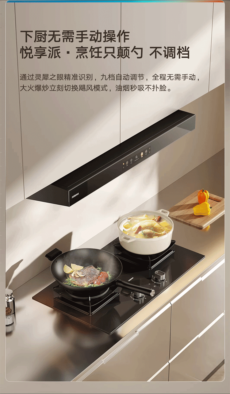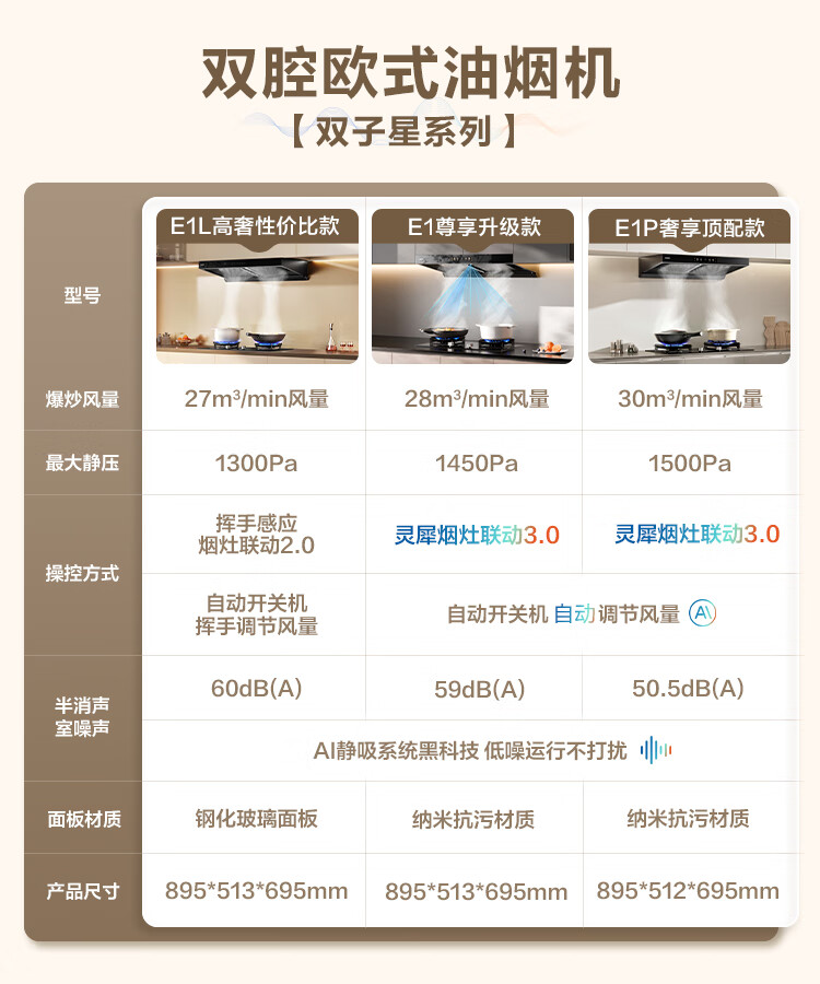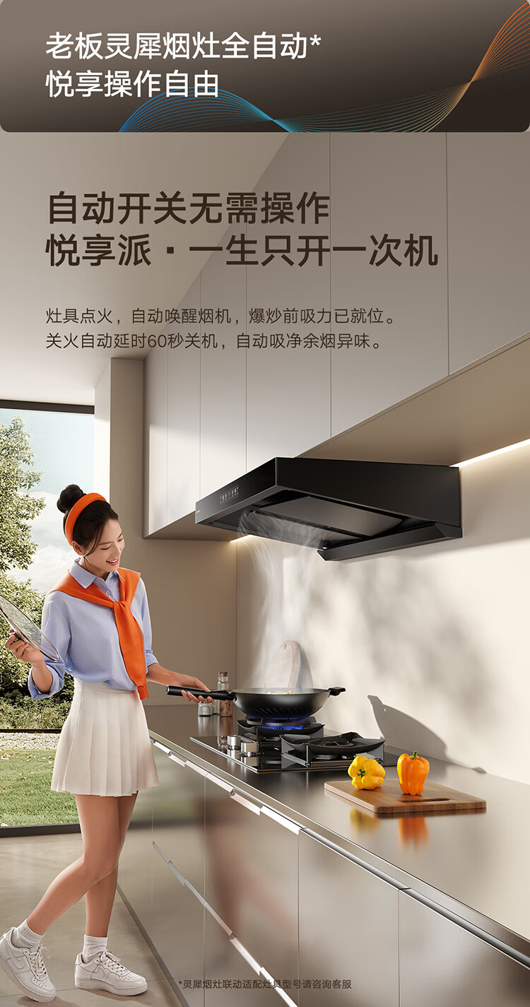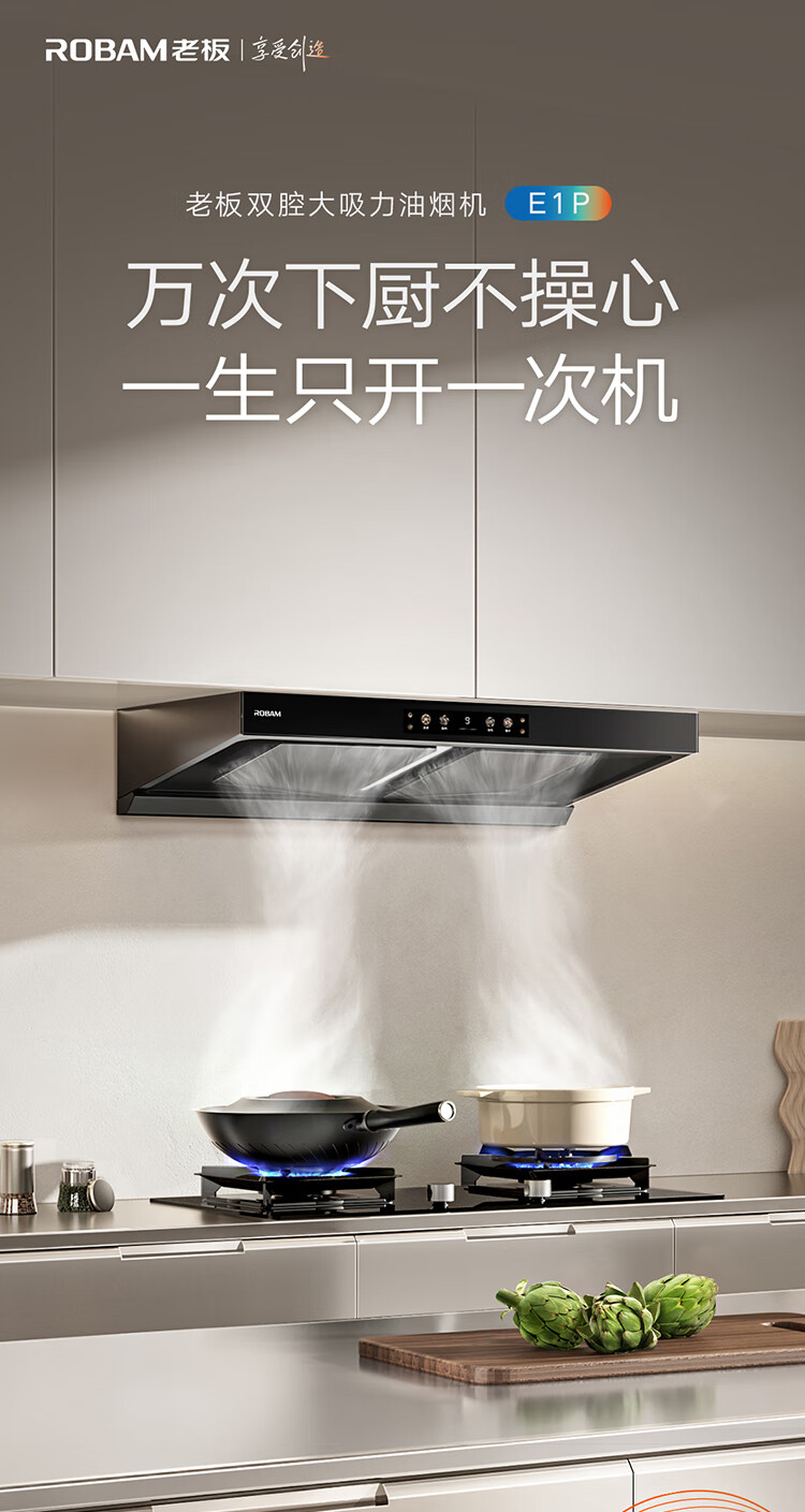 Boss Fengshen series top-of-the-line home high-suction range hood trade-in for new home installation first-class energy efficiency silent European Gemini top suction E1P