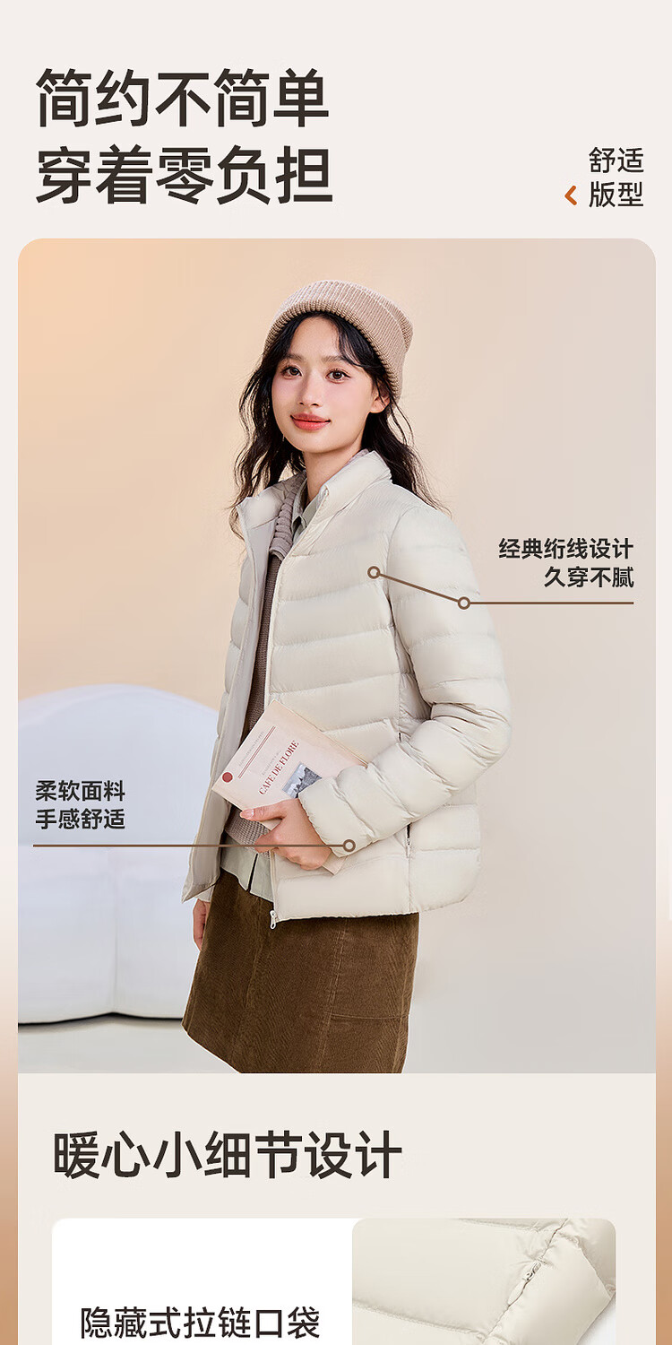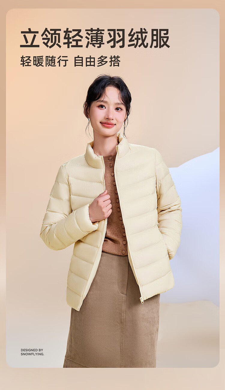 Snow Flying 2025 New Style Classic Fashion Versatile Lightweight Women's Stand Collar Autumn Down Zipper Pocket Warm and Fashionable
