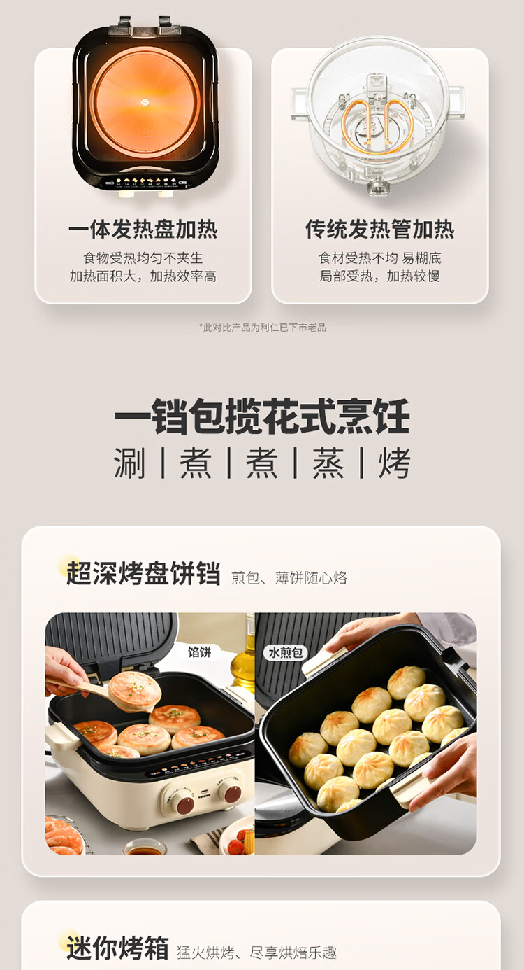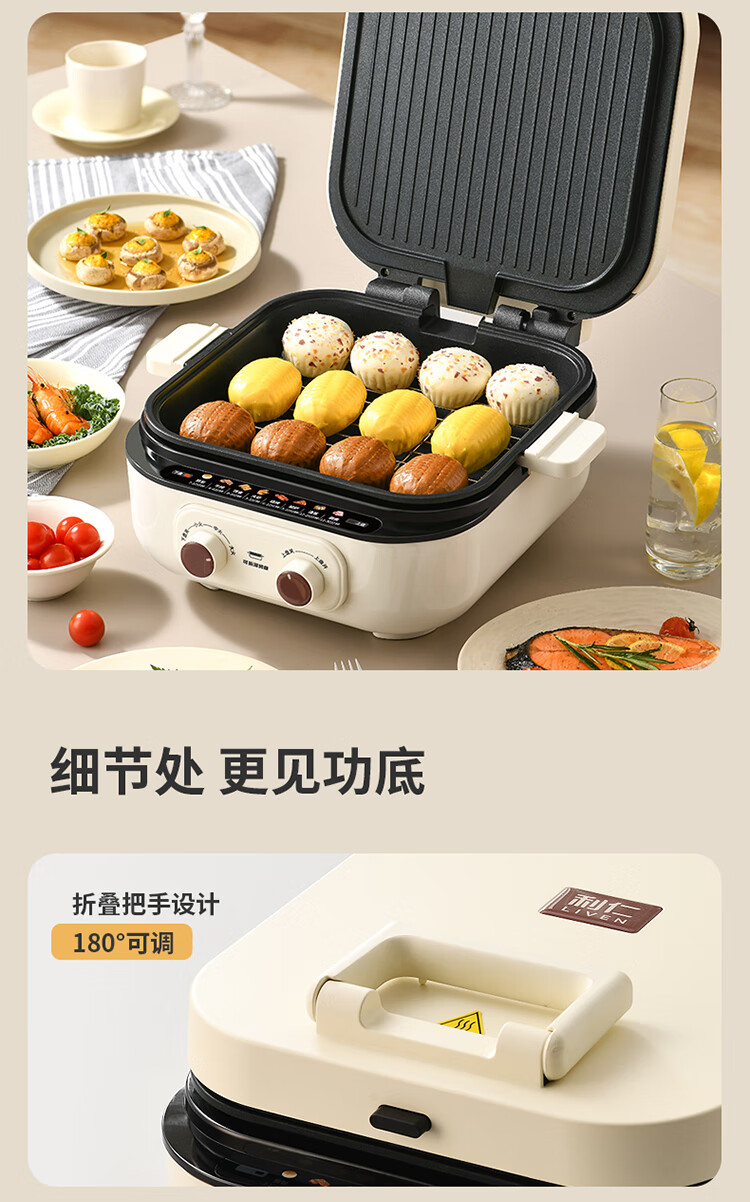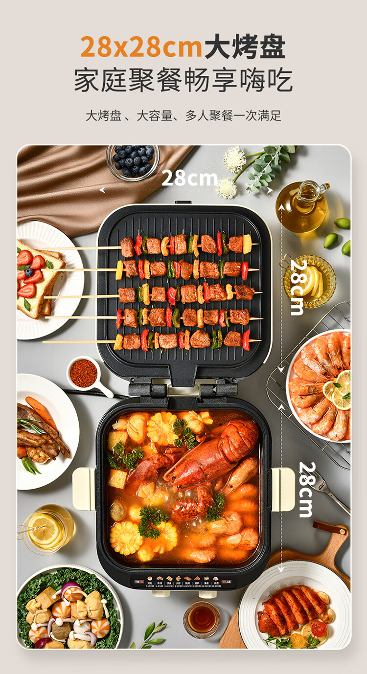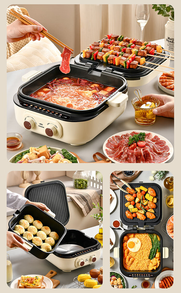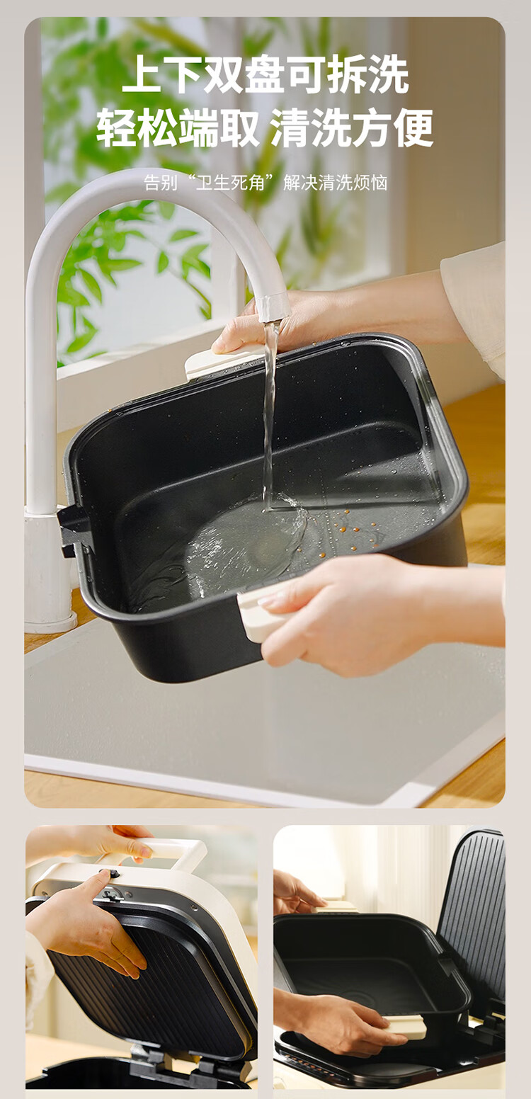 Liven 2025 New Xiaodundun Electric Cake Pan 0 Fluorine Titanium Porcelain Upper and Lower Plate Removable Household Shabu-shabu Integrated Pot Larger and Deeper 2200W Multifunctional Electric Hot Pot Breakfast Machine ML-J2875
