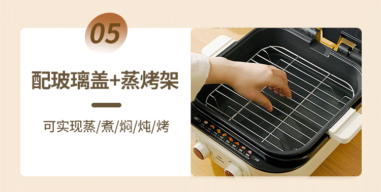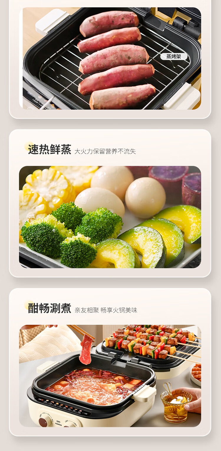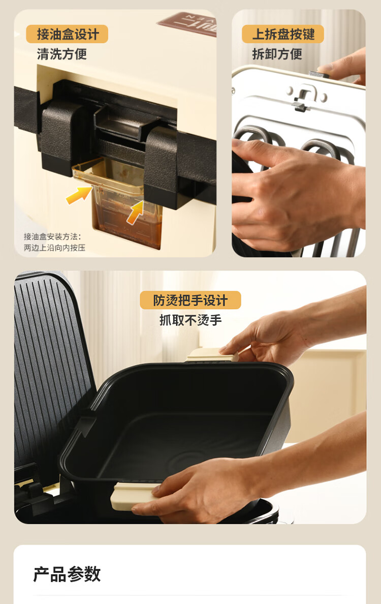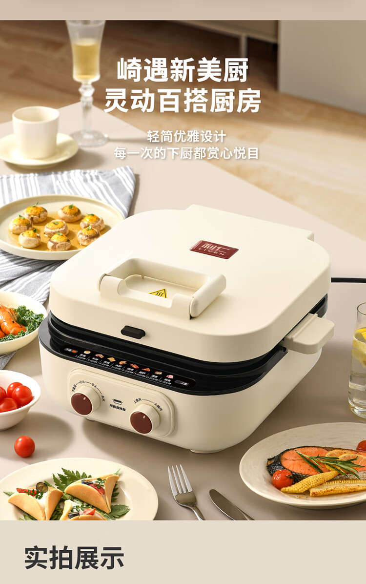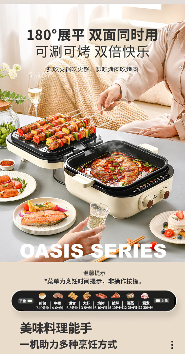Liven 2025 New Xiaodundun Electric Cake Pan 0 Fluorine Titanium Porcelain Upper and Lower Plate Removable Household Shabu-shabu Integrated Pot Larger and Deeper 2200W Multifunctional Electric Hot Pot Breakfast Machine ML-J2875
