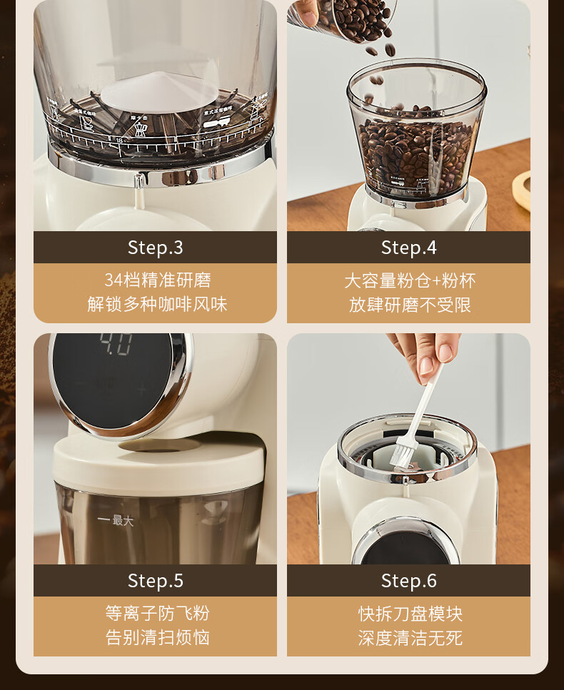 Circle Joy Electric Bean Grinder Office Home Large Capacity Italian Stainless Steel Grinding Core Coffee Bean Grinder Automatic Powder Grinder