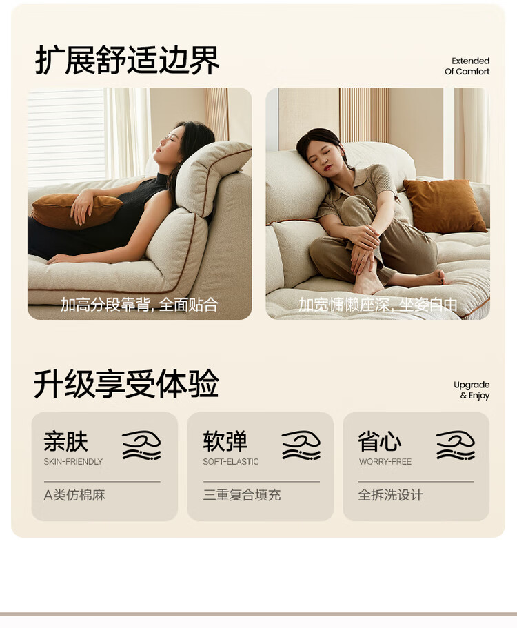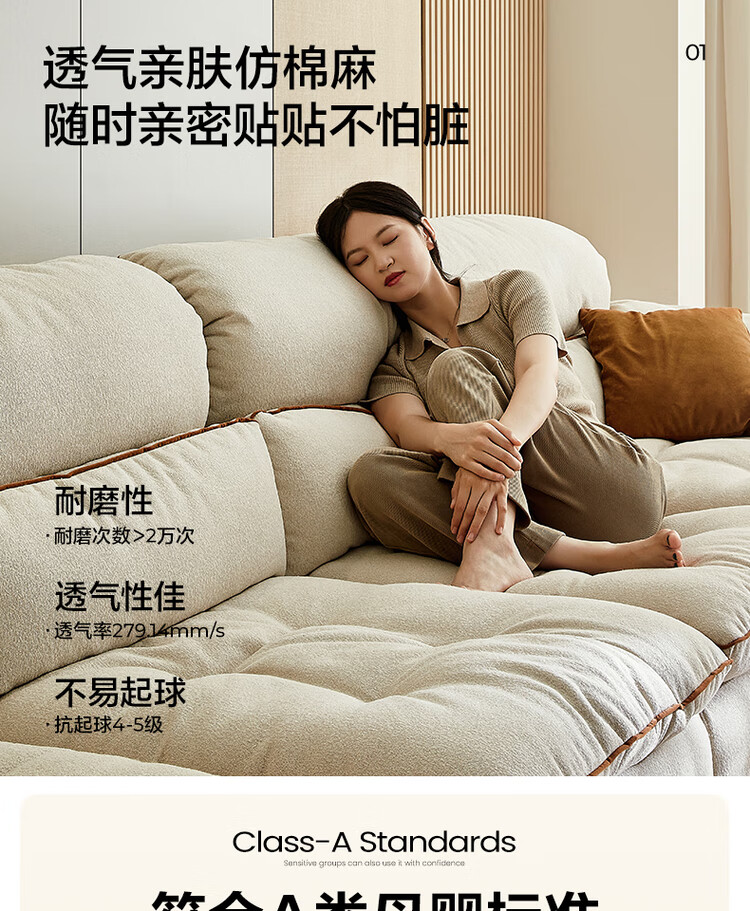 Quanyou Home Modern Cream Style Fabric Sofa Living Room 2025 New Home Removable and Washable Imitation Cotton and Linen Sofa