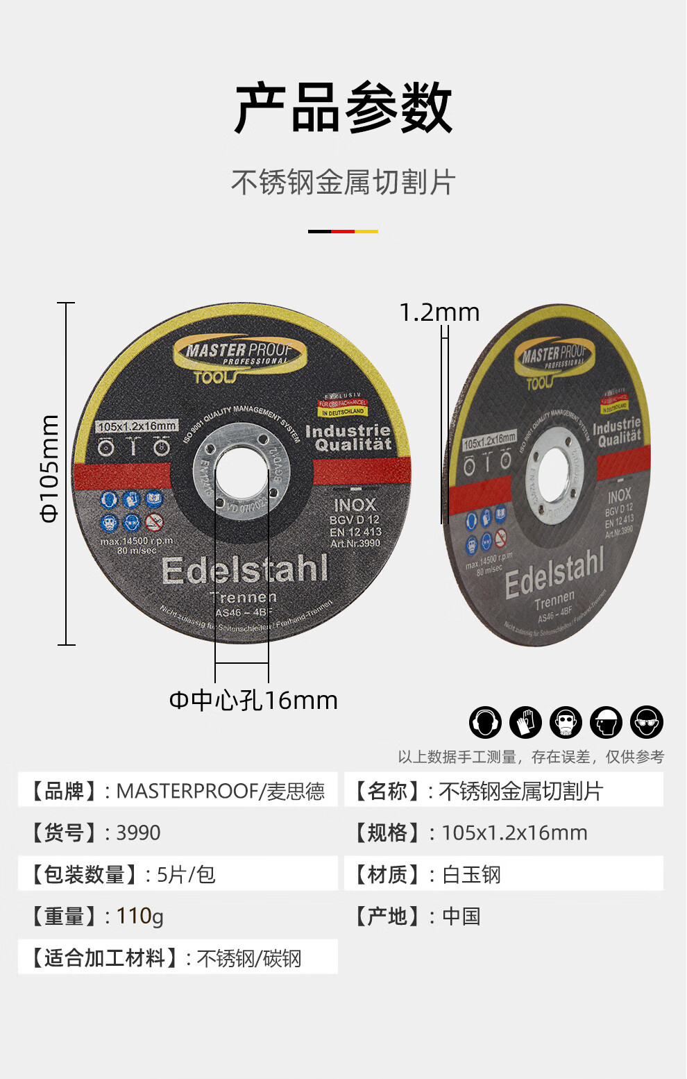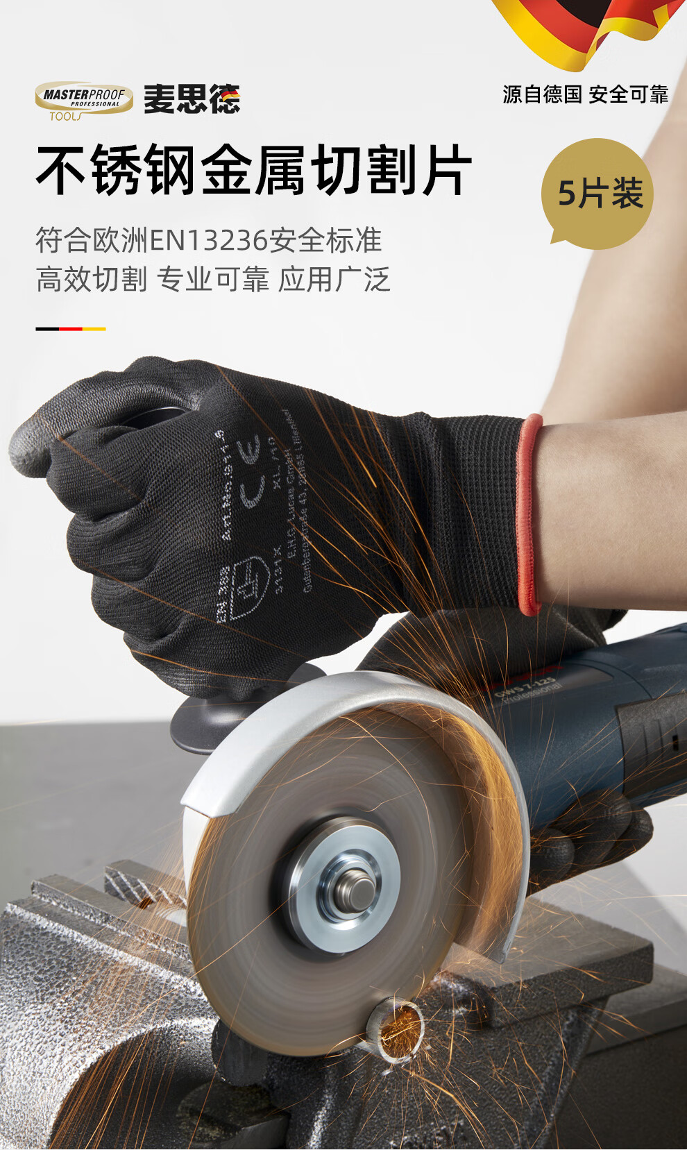 MASTERPROOF stainless steel metal cutting disc angle grinder steel cutting disc white corundum grinding wheel disc 105*1.2*16MM5 pieces