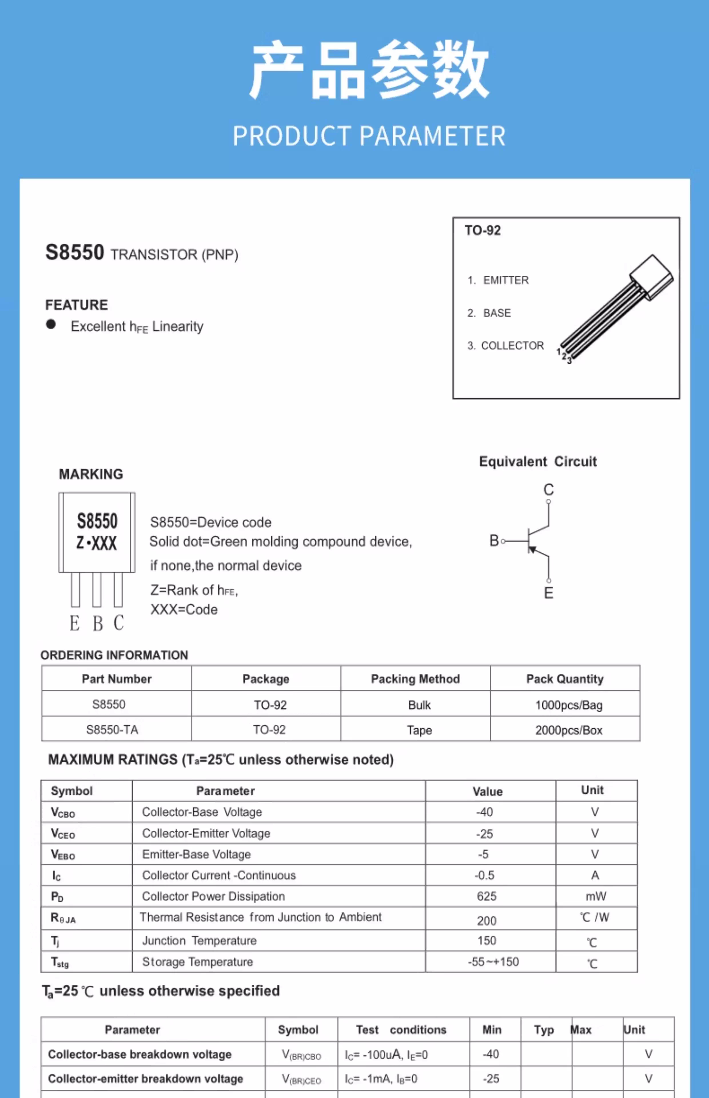 ZAVE transistor 2SA1015 plug-in PNP type (50 pieces)