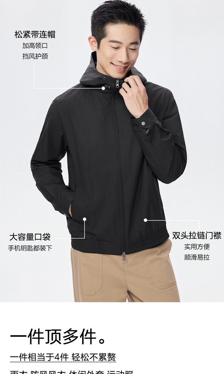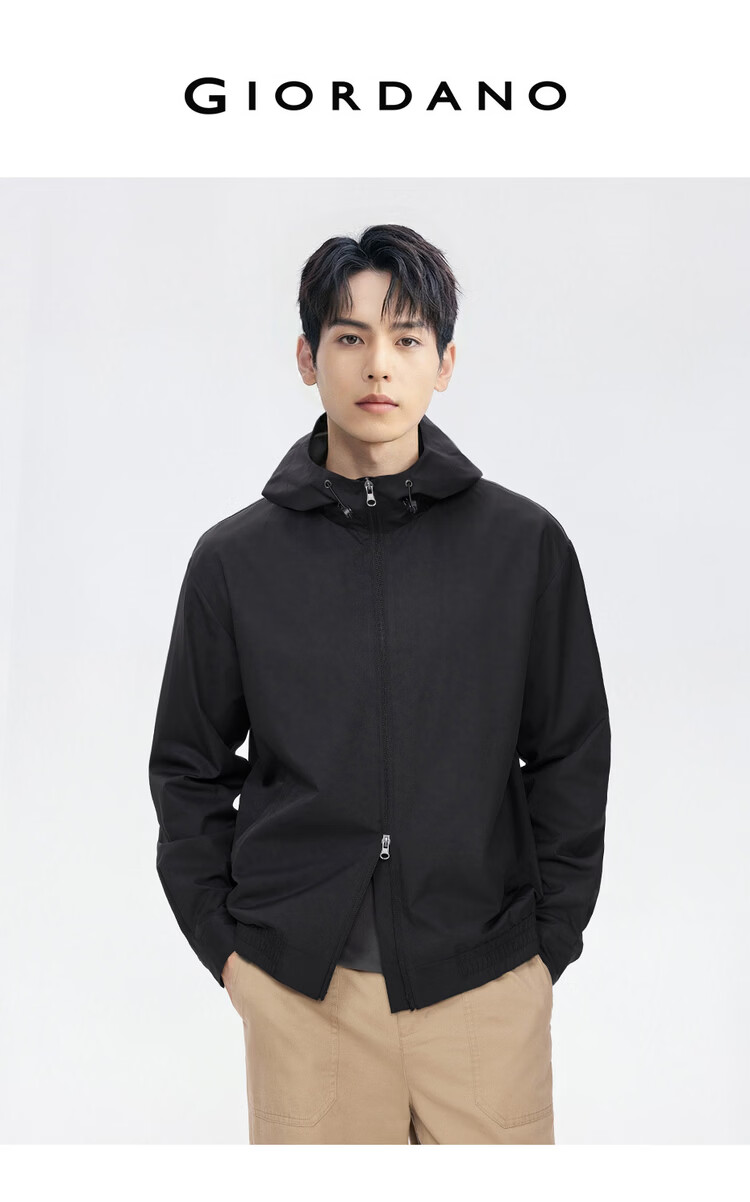 Giordano windproof jacket men's autumn and winter new outdoor double-ended zipper loose hooded windbreaker jacket 01075075
