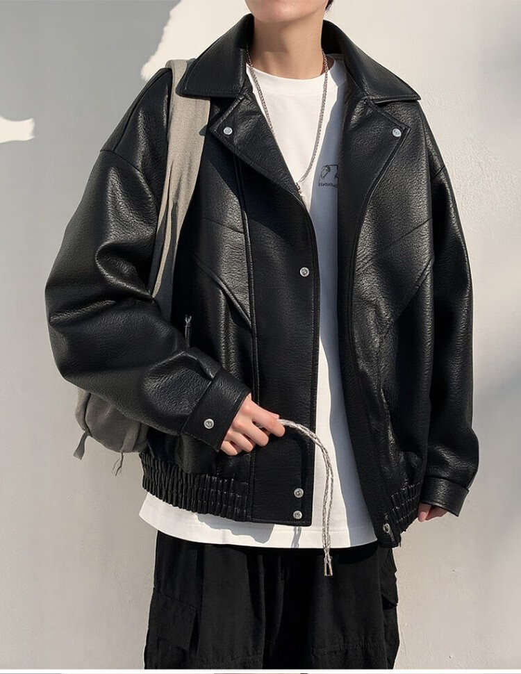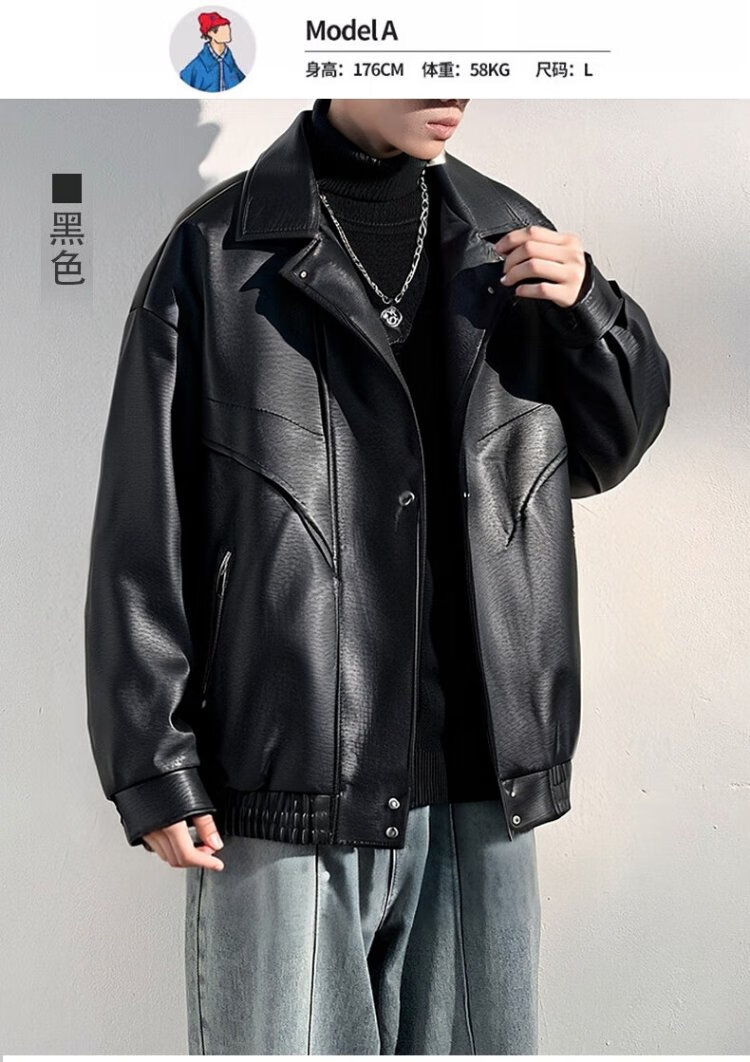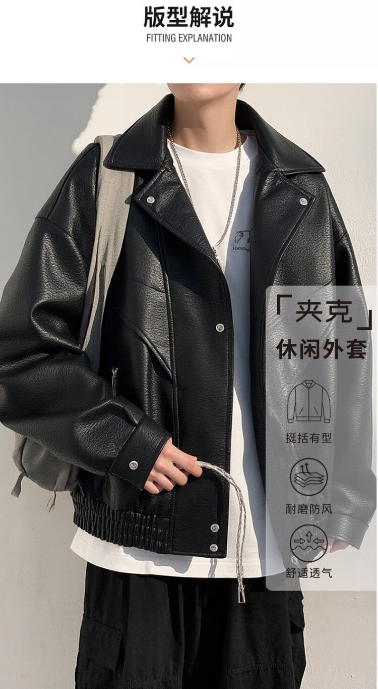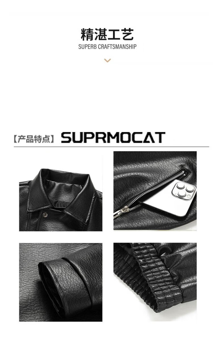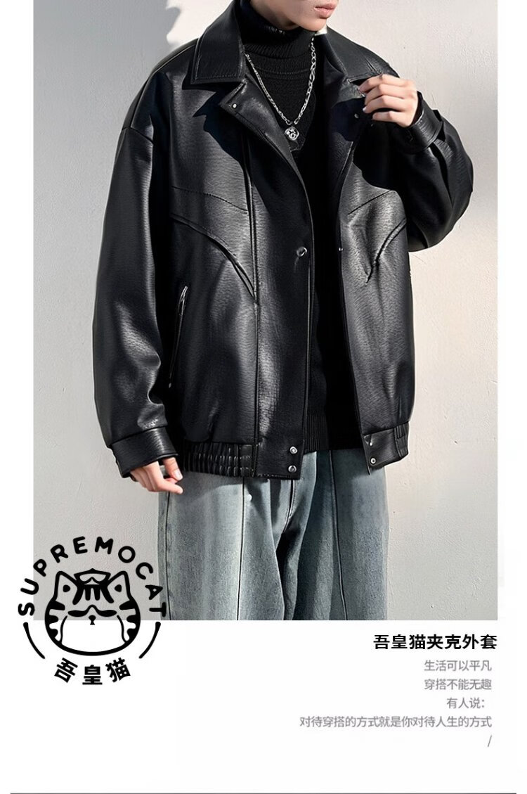 My Royal Cat American Leather Jacket Men's Spring and Autumn Versatile Retro Handsome Versatile Motorcycle Leather Jacket WJ14 Black XL