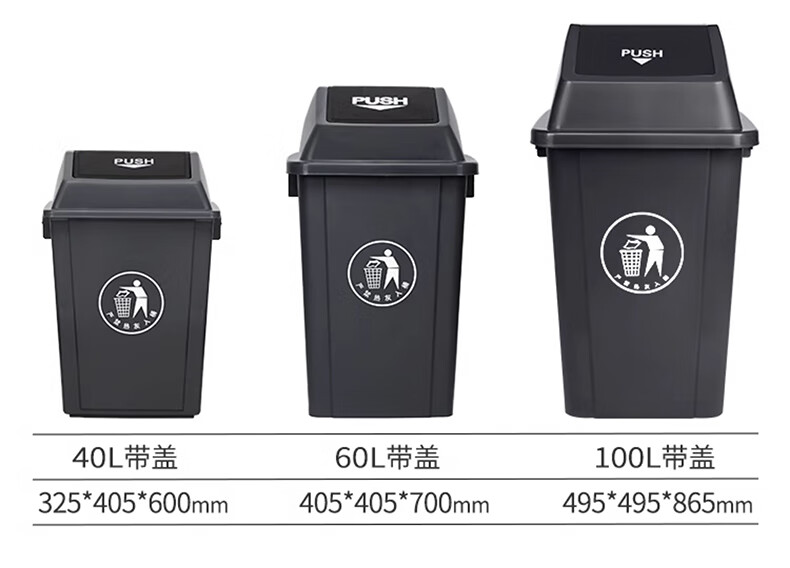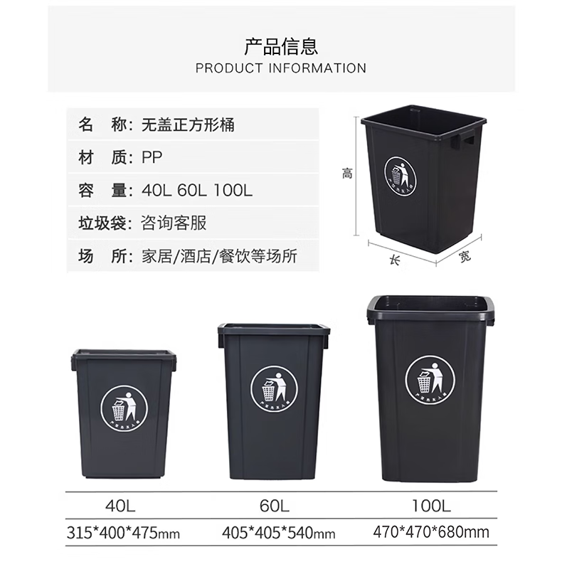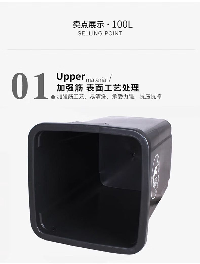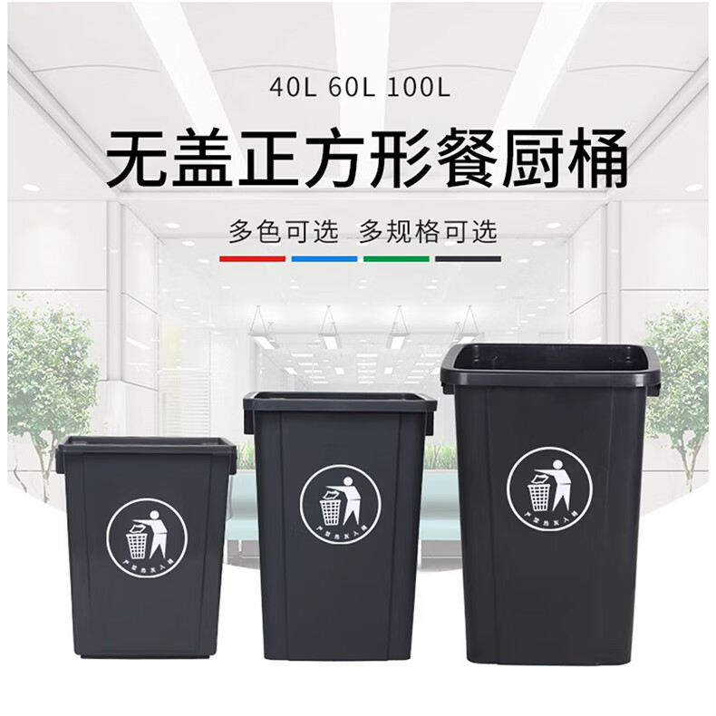 Jingbaodun square commercial large-capacity kitchen waste dining cabinet trash can 100 liter square bucket (gray) with lid
