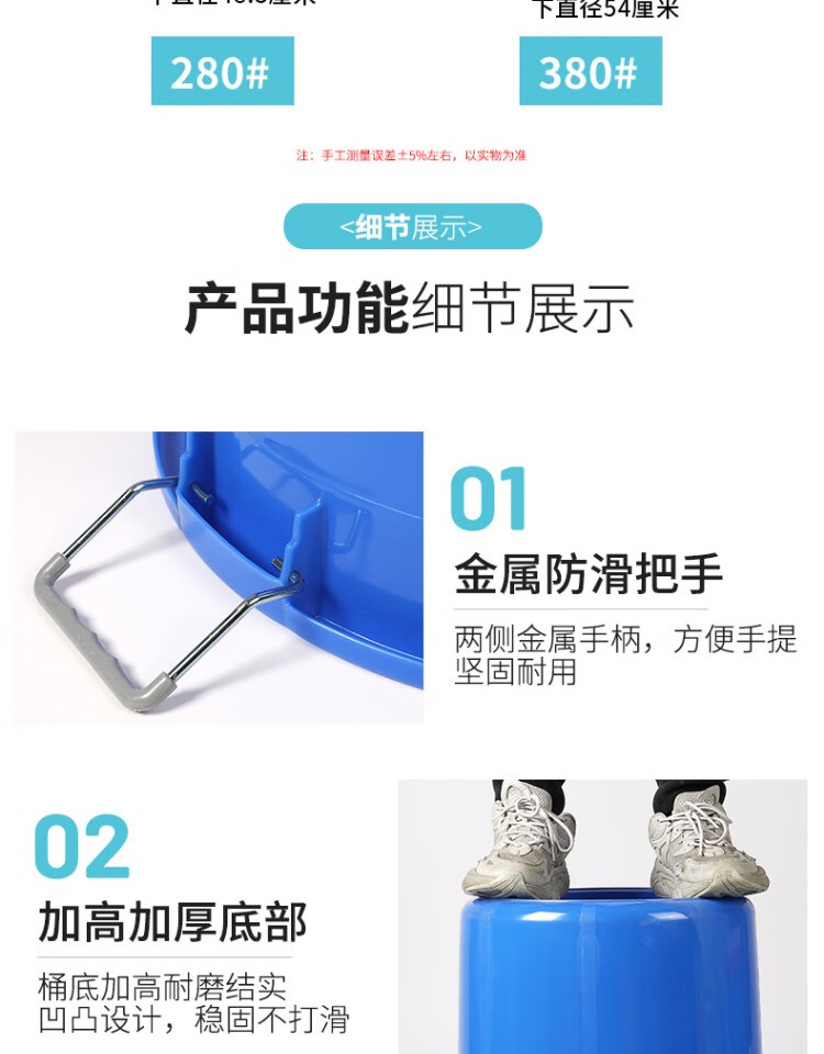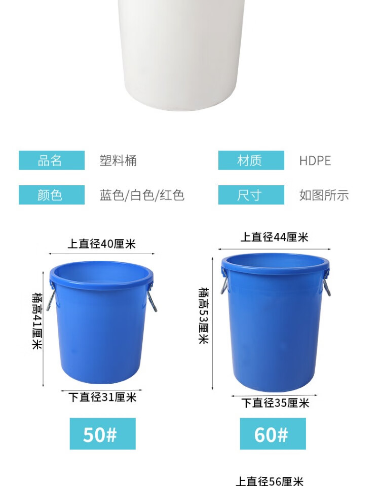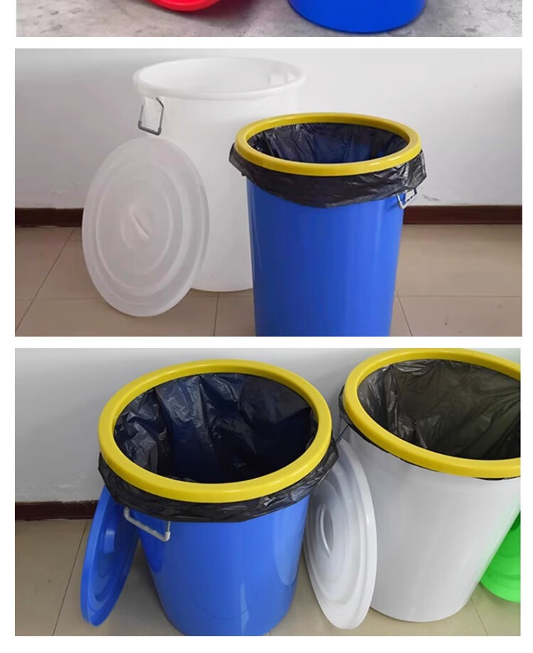 Jingbaodun outdoor sanitation hotel classroom kitchen commercial large capacity drum trash can plastic bucket 280# white without lid