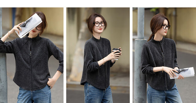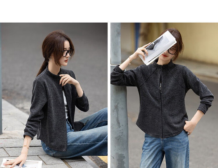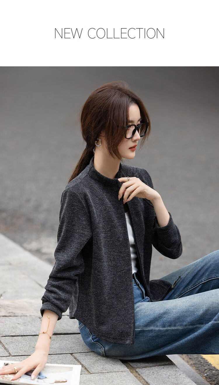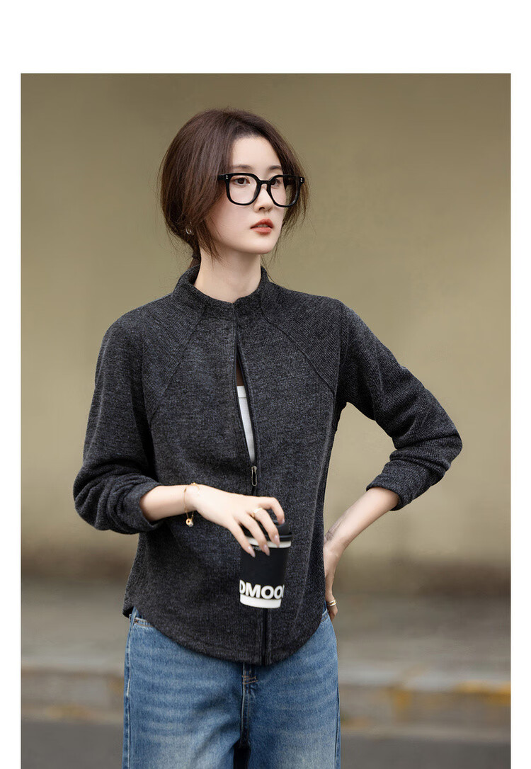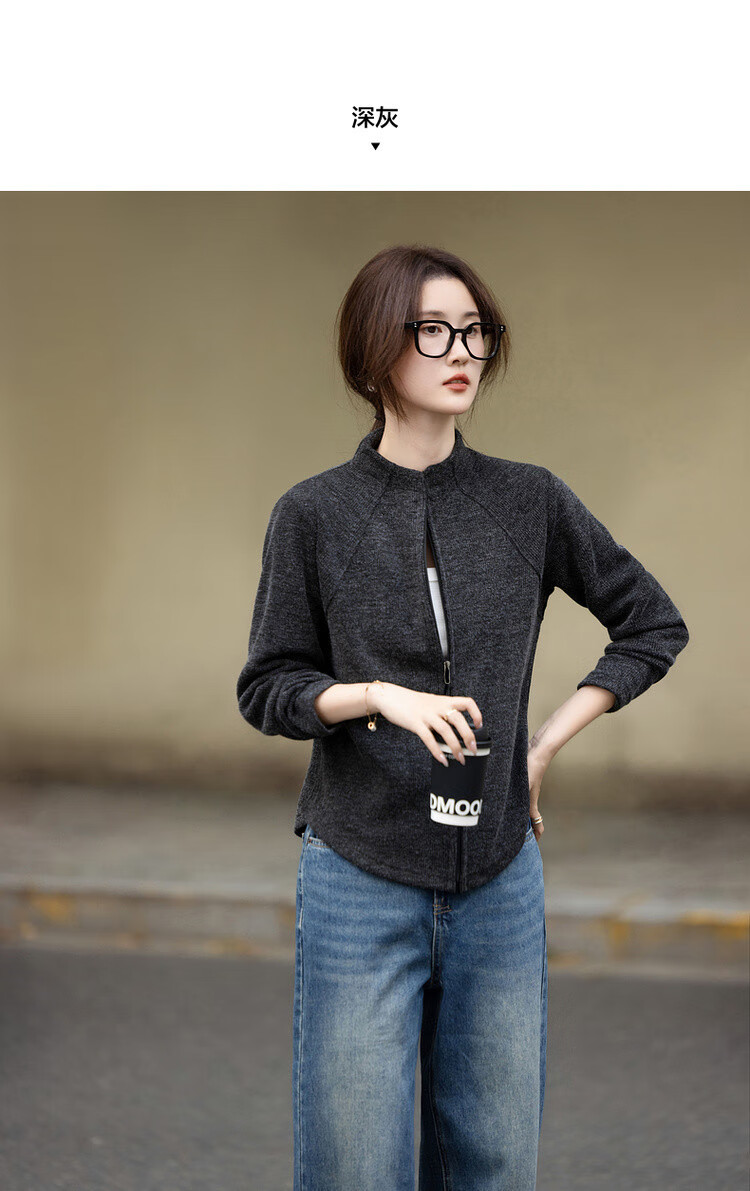 De Mana intellectual wear autumn Korean style urban stand collar zipper long sleeve loose small light women's jacket