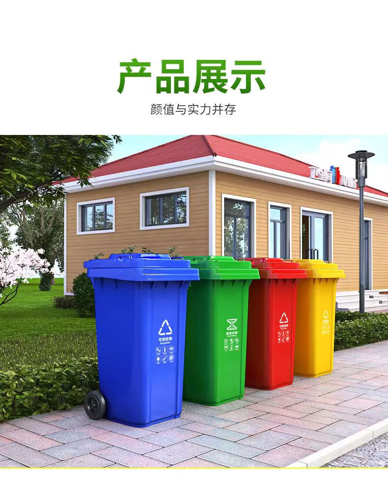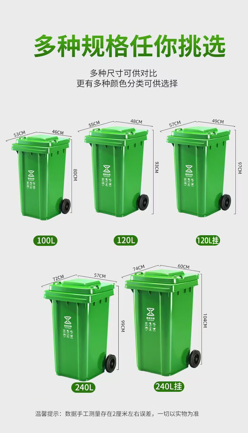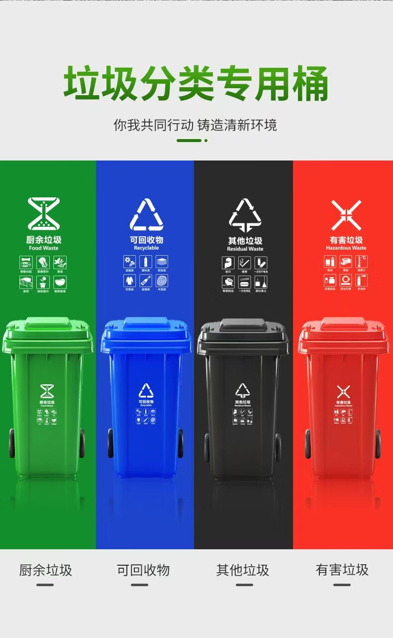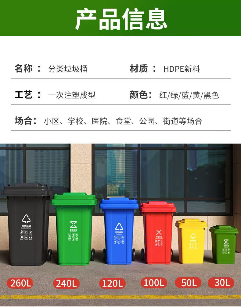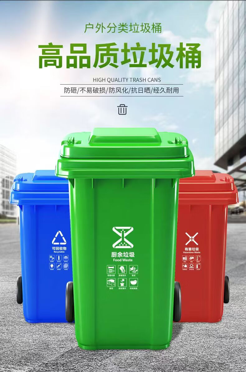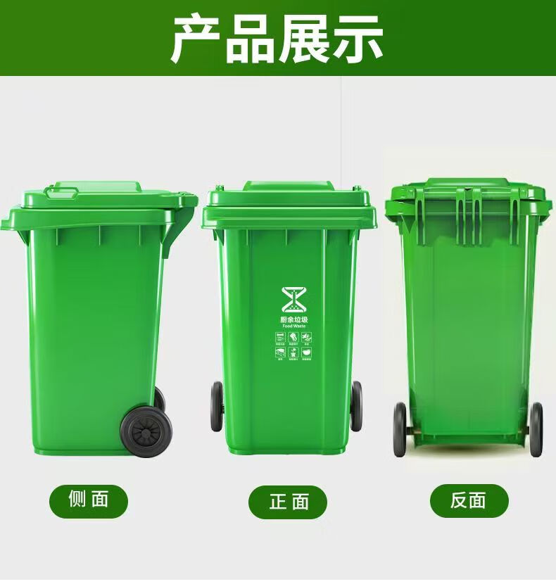 Mamurphy outdoor trash can large thickened black 240L wheeled trash can commercial large capacity with lid sanitation outdoor dining peel box kitchen household