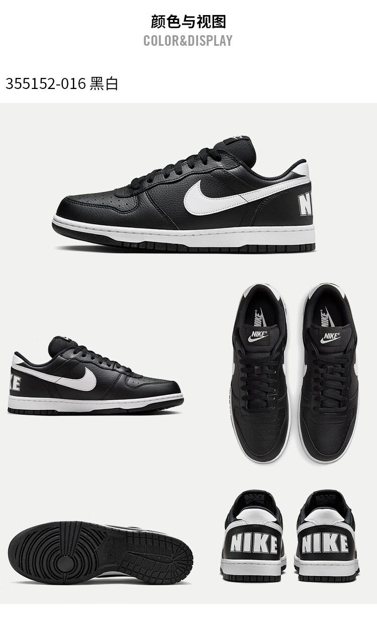 NIKE NIKE Men's Casual Shoes BIG NIKE LOW Sports Shoes 355152-016 Black and White 40