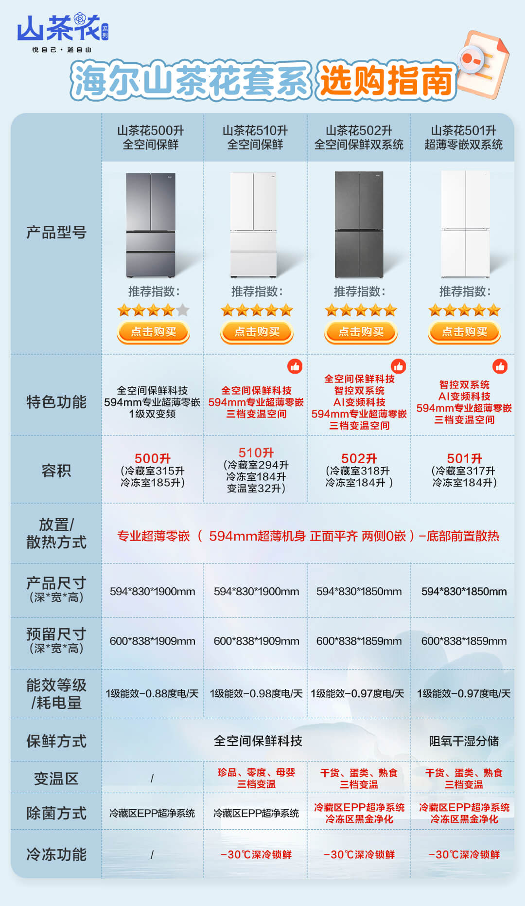 Haier Camellia-Yaoye 502L cross-door refrigerator dual system dual engine constant fresh cabin full space ultra-thin zero-embedded BCD-502WGHTD1CYXU1 national subsidy
