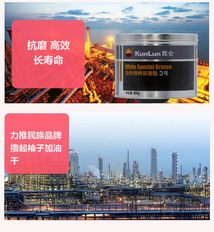 KunLun white special grease engineering machinery bearing lubricant automobile sunroof door hinge guide rail grease No. 3 800g/can