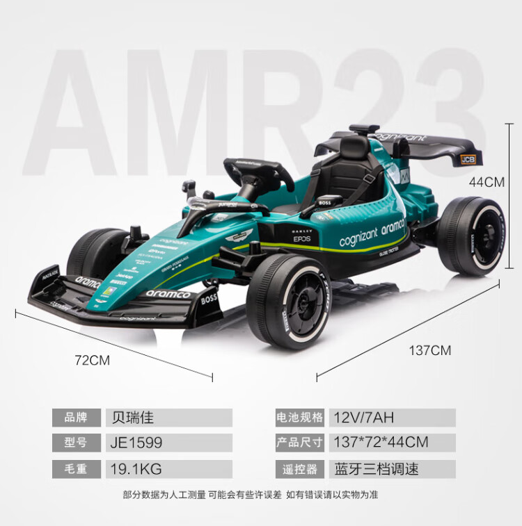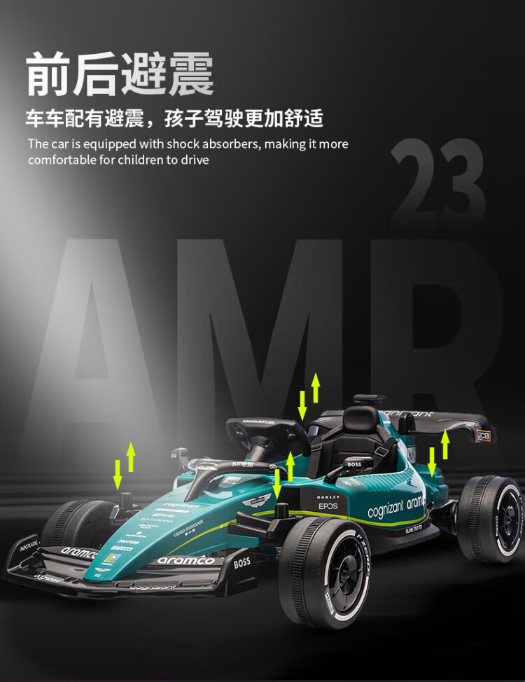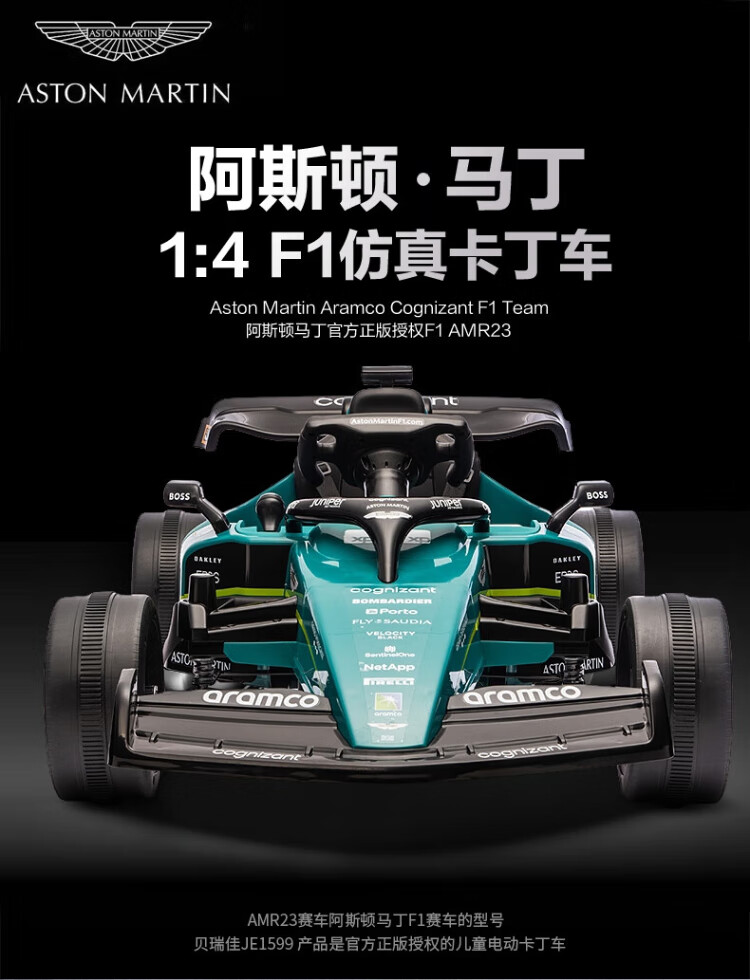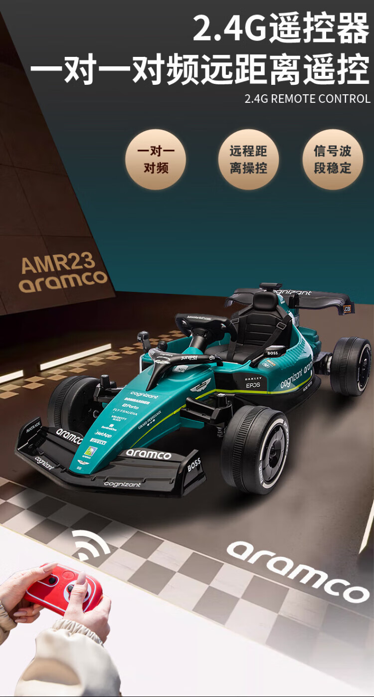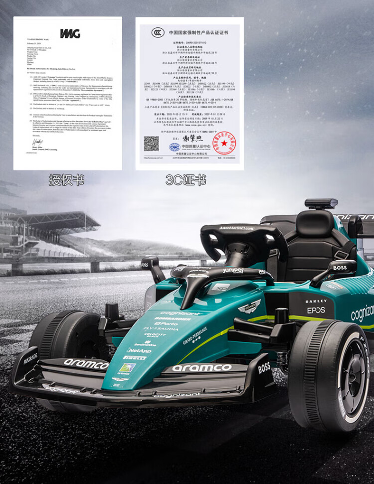 BeRica Aston Martin authorized F1 children's electric car kart remote control toy car 3-6th birthday gift