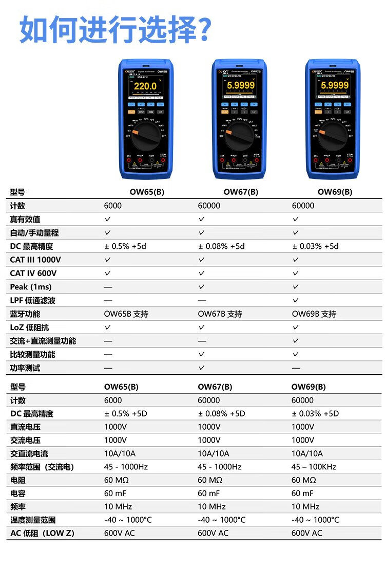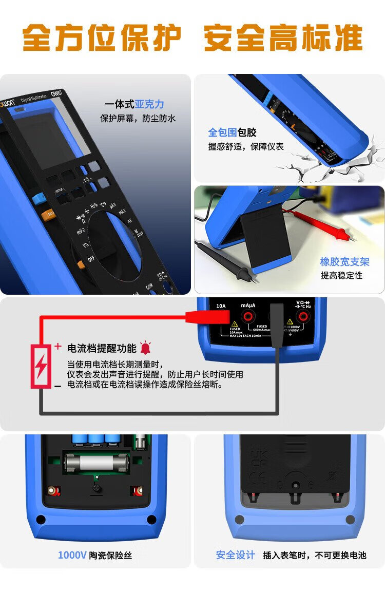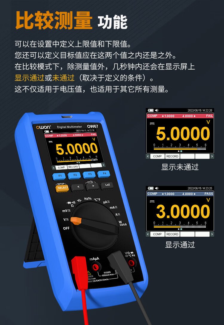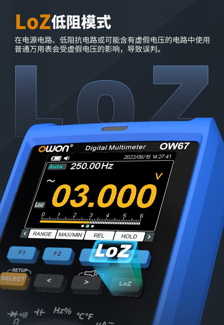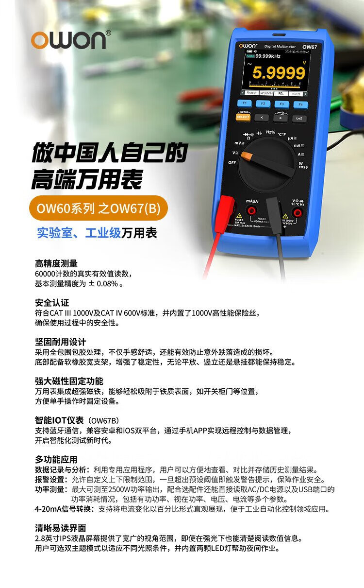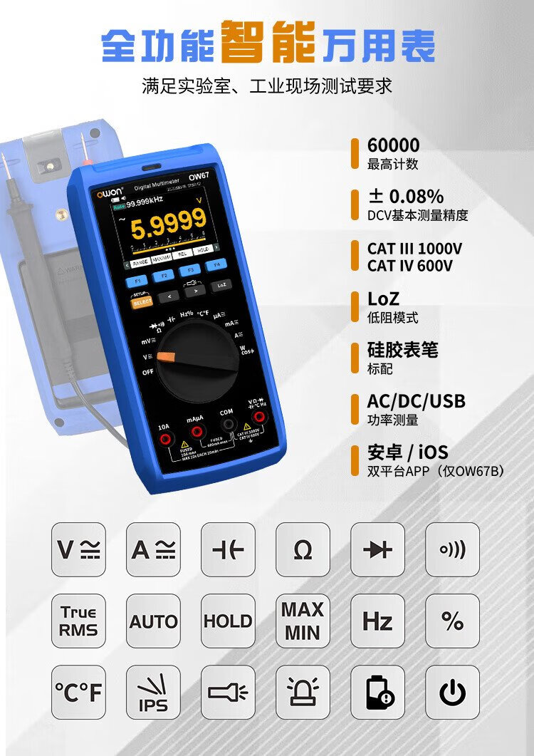 Owon Lilliput industrial grade multimeter OW67 four and a half digits 60000 count intelligent anti-burn true effective value magnetic attraction