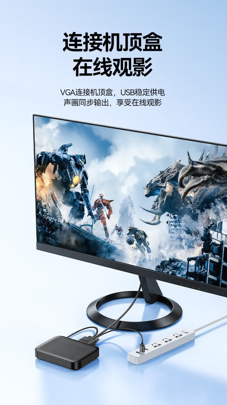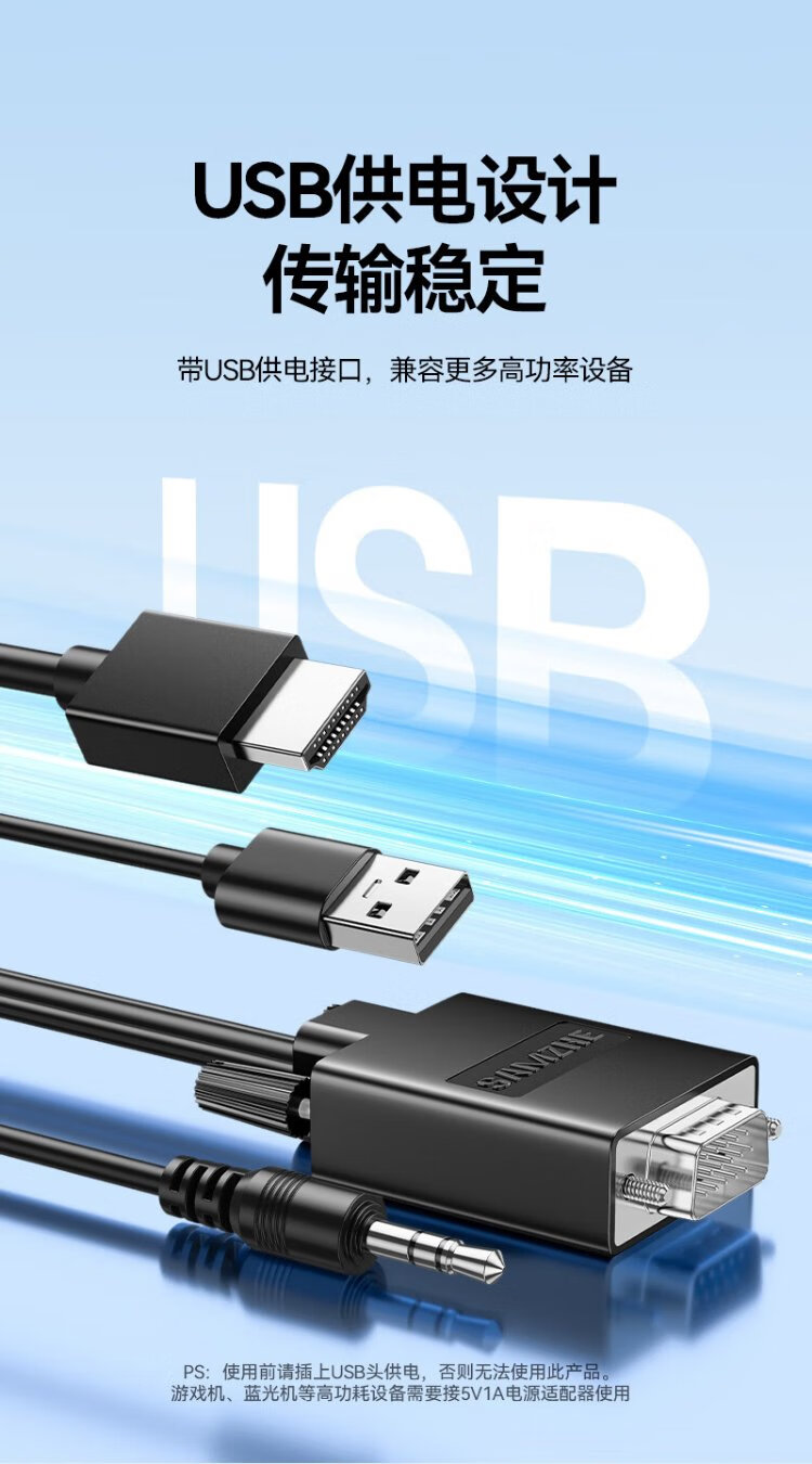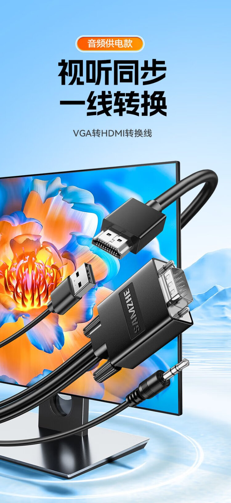 Shanze VGA to HDMI conversion cable HD converter with audio power supply cable adapted for computer notebook connection TV monitor projector 2 meters VH20X