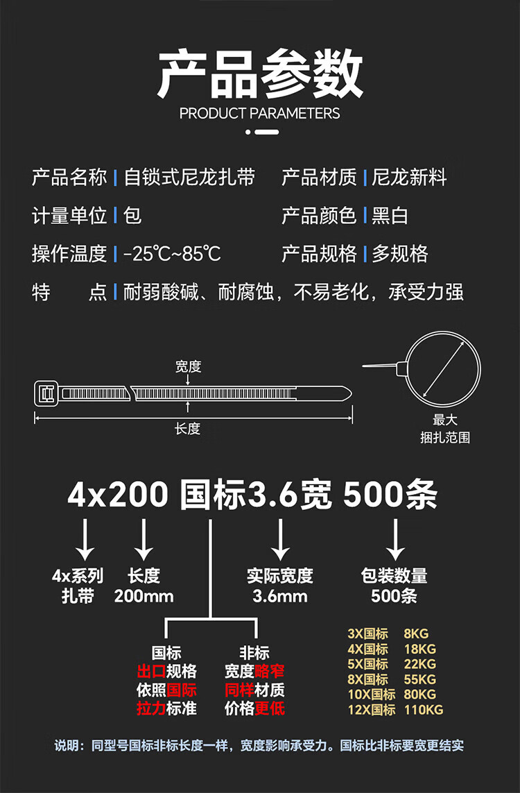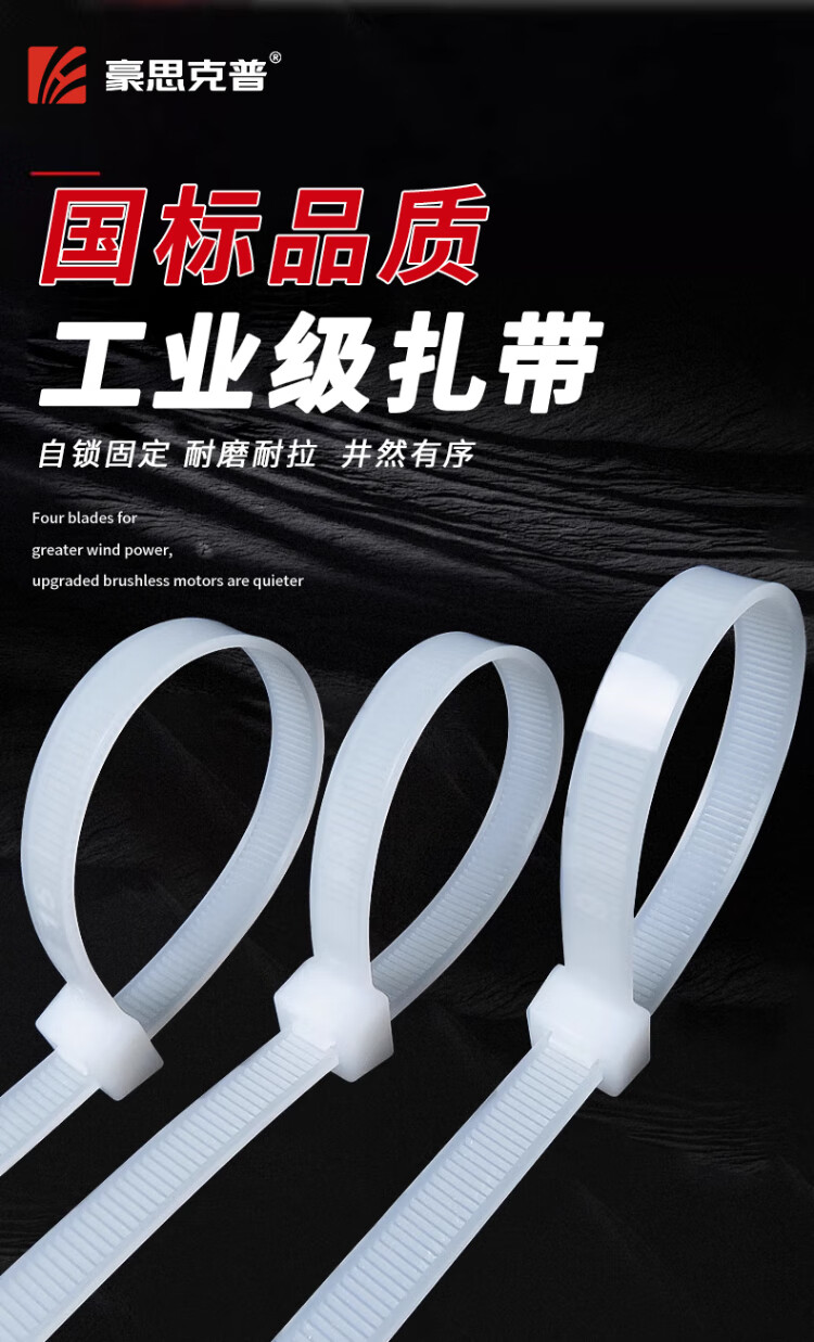 Hauskop Nylon Cable Tie National Standard 3.6*250mm Computer Installation Gardening Cable Management Belt Self-locking Cable Desktop Management Flame-Retardant Wire Harness Wire Bundling Tape White 200 Pieces/Pack