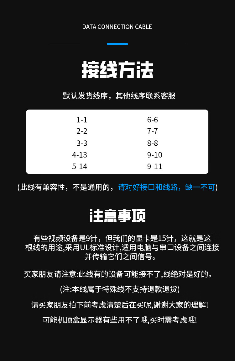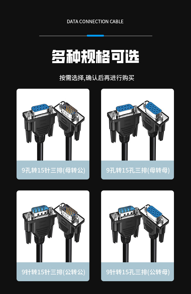 DB9 to VGA adapter cable DB9 hole to VGA three-row 15-hole data connection cable 0.5 meters JN-4S7506