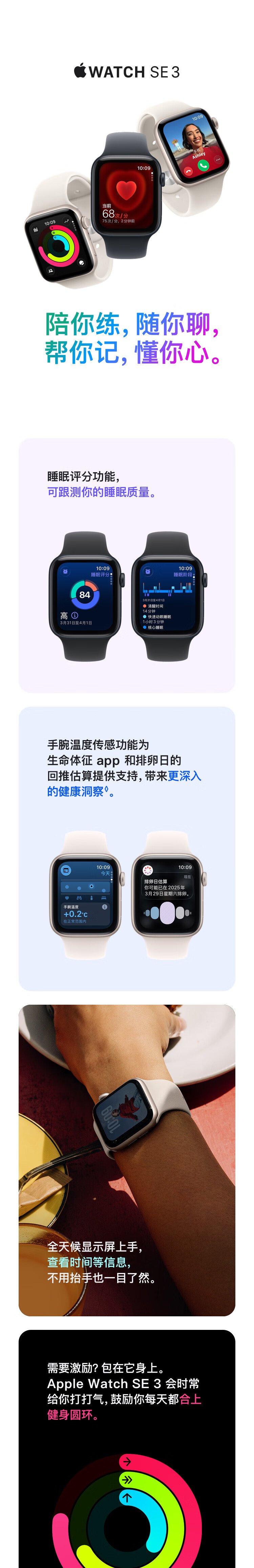 Apple/Apple Watch SE 3 Smart Watch GPS Model 44mm Midnight Color Aluminum Metal Case Midnight Color Sports Strap S/M MEHP4CH/B