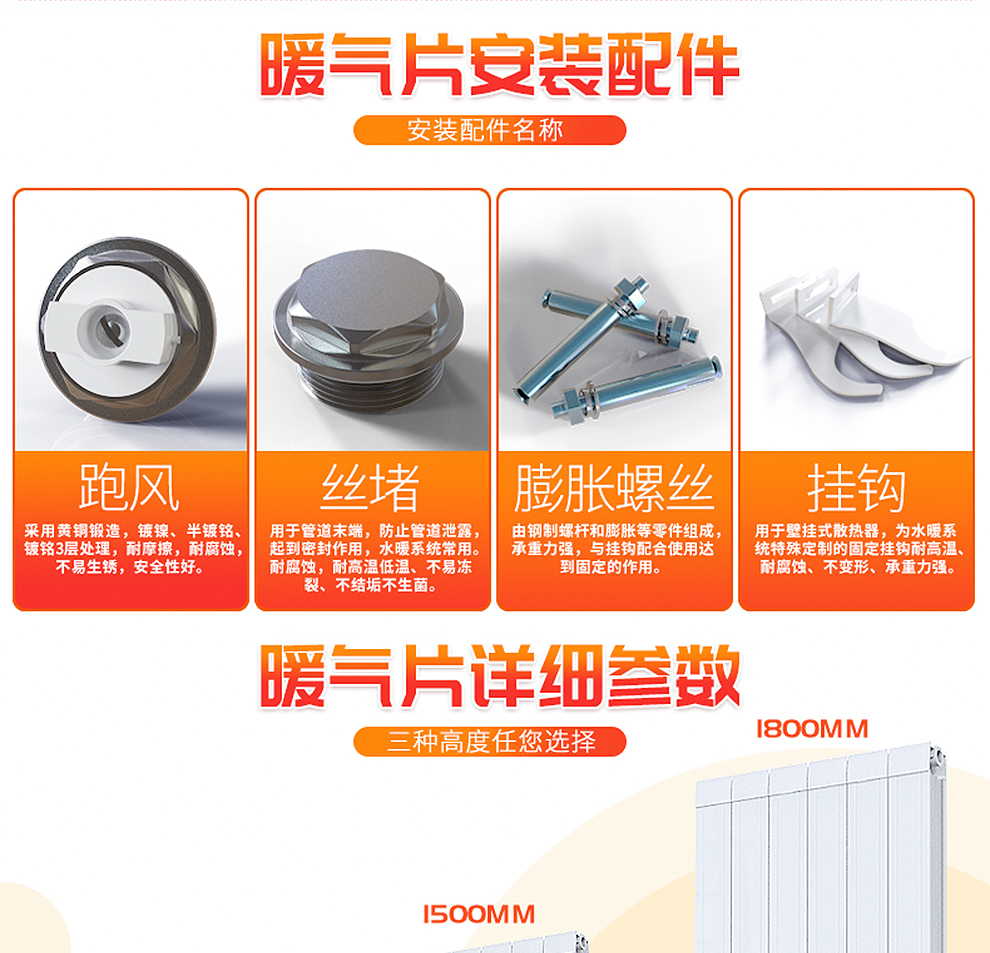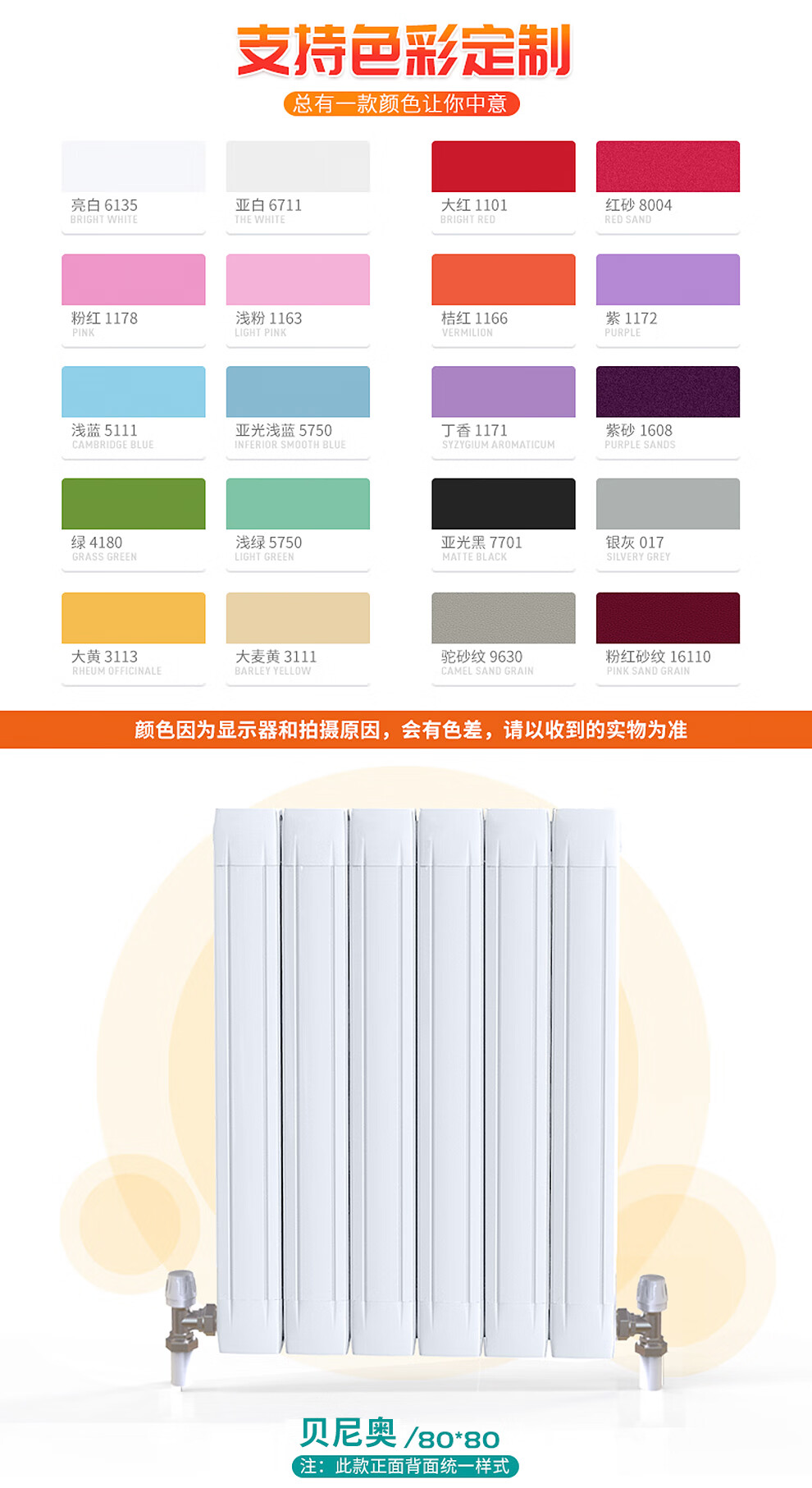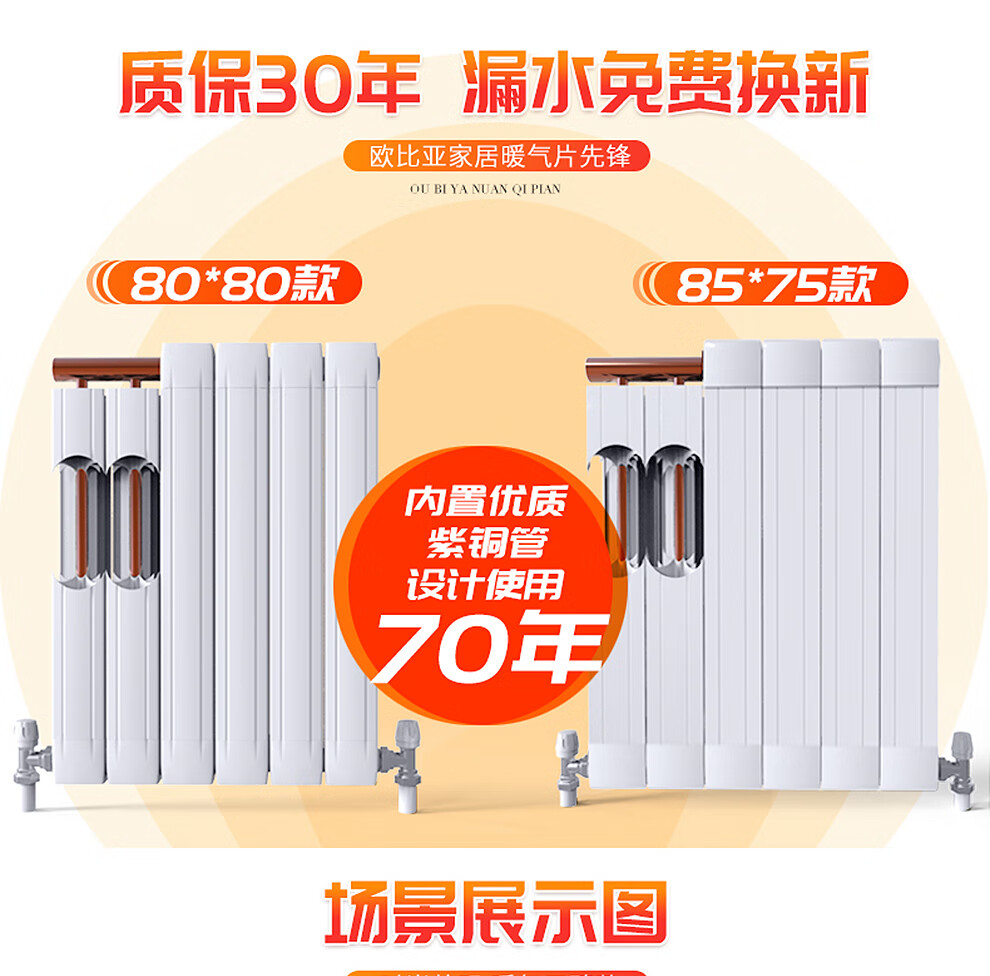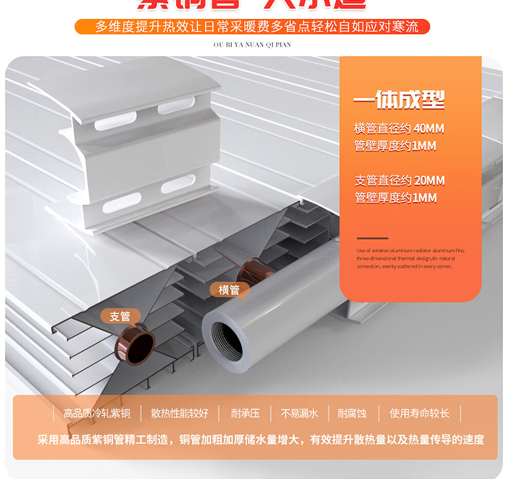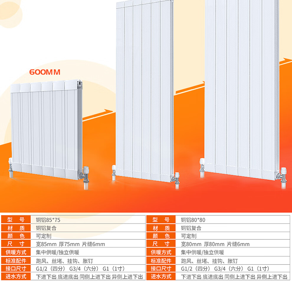 Benio copper-aluminum composite household water heating radiator wall-mounted radiator centralized self-heating for bedroom and living room 600mm center distance