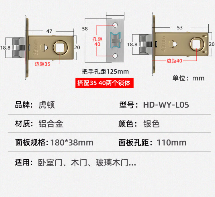 HOTUN bathroom door lock universal bathroom door lock type light sound keyless toilet bathroom special aluminum alloy door handle bathroom aluminum handle-WY-L05 silver