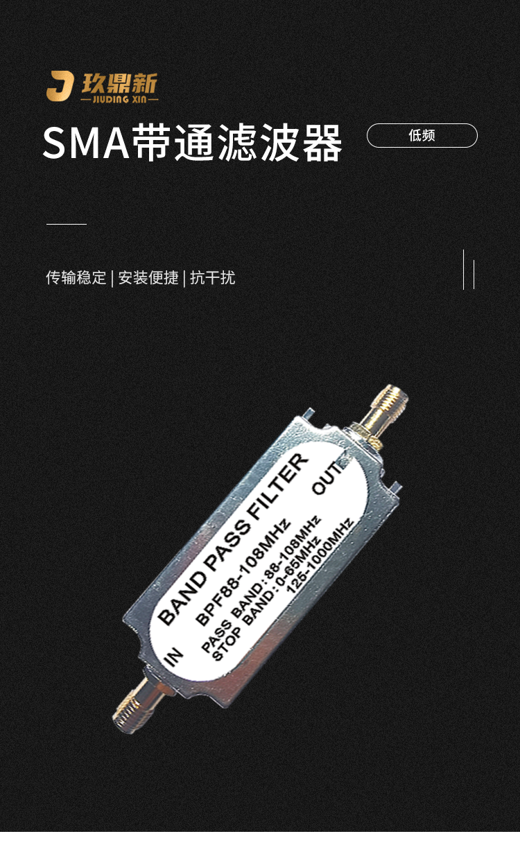 Jiudingxin SMA double female bandpass filter 88-108mhz FM RF LC filter 50 ohm JDX-T-SMAKK-88/108