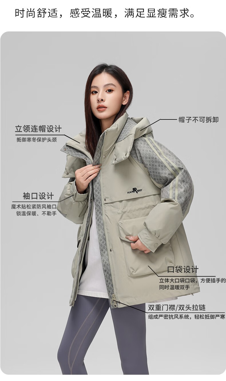 YAYA Parker Down Jacket Women's Mid-Length New Style Winter Hooded Fashionable Comfortable Versatile Slim Slim Commuting Warm Jacket