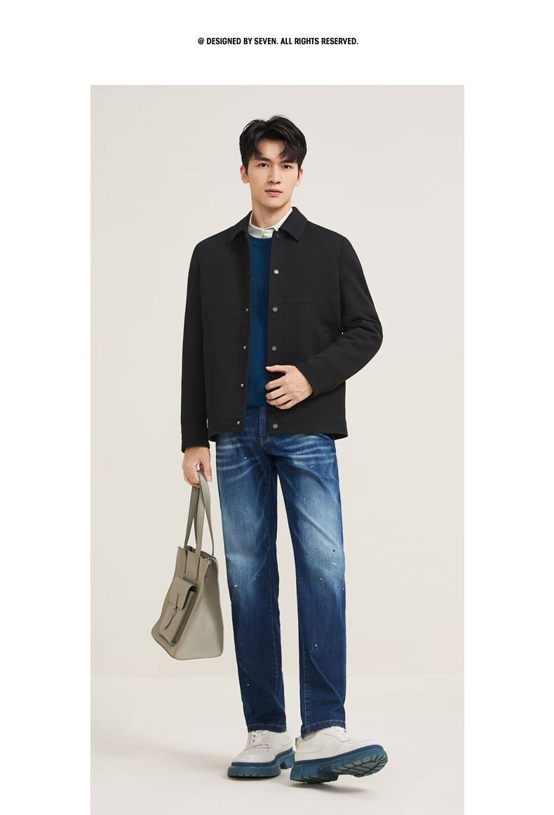 SEVEN Modal Textured Jacket Men's 2025 Autumn and Winter Lapel Casual Youth Jacket