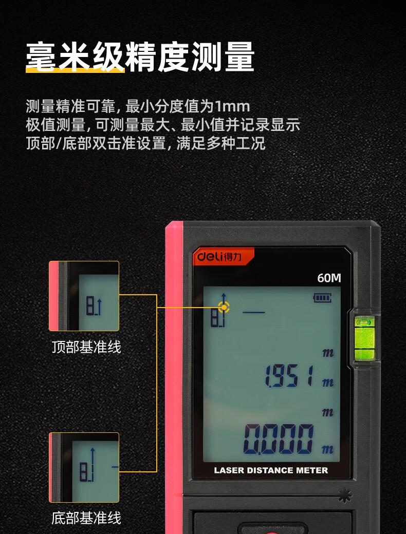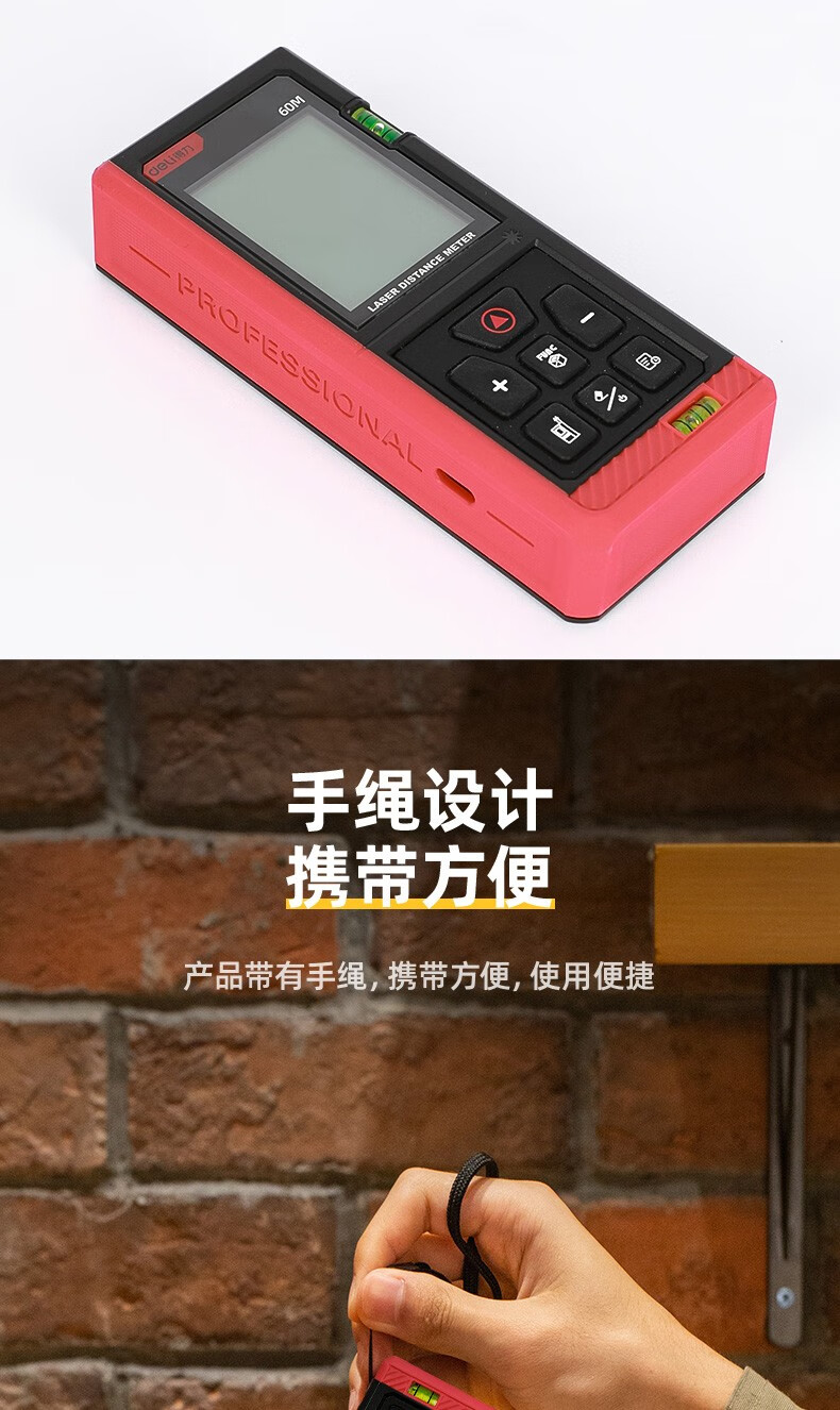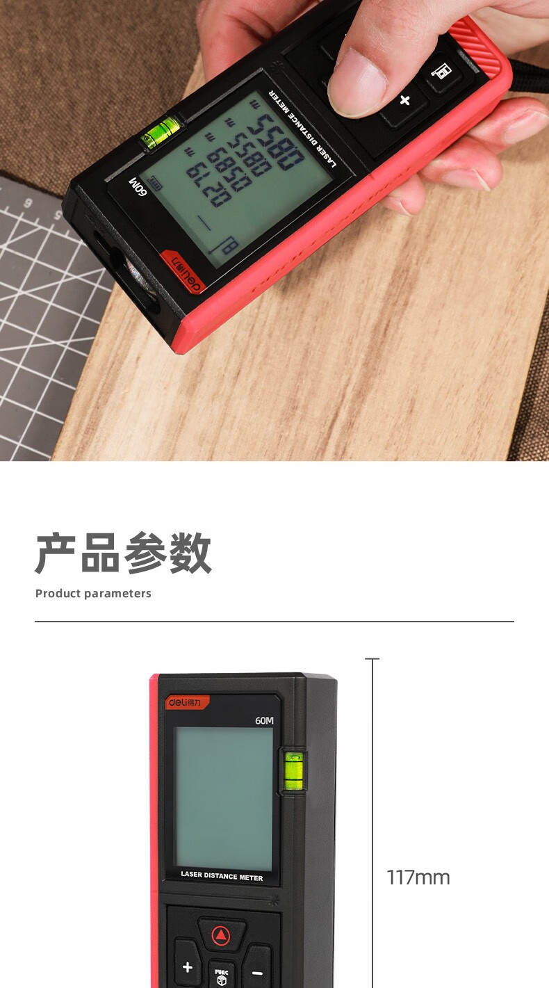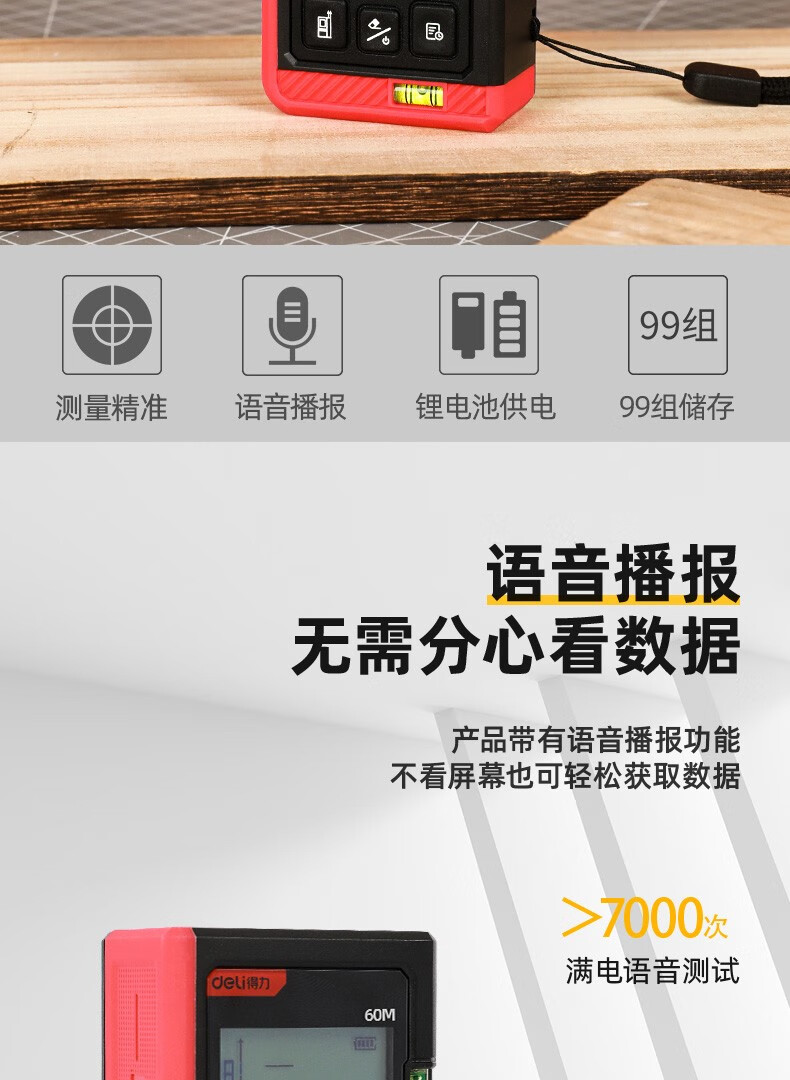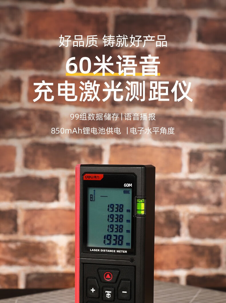 Deli laser range finder voice rechargeable handheld infrared measuring ruler electronic ruler high precision measuring room instrument measuring instrument rechargeable voice laser range finder 60m
