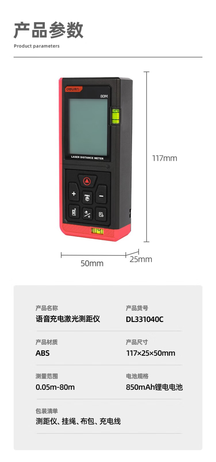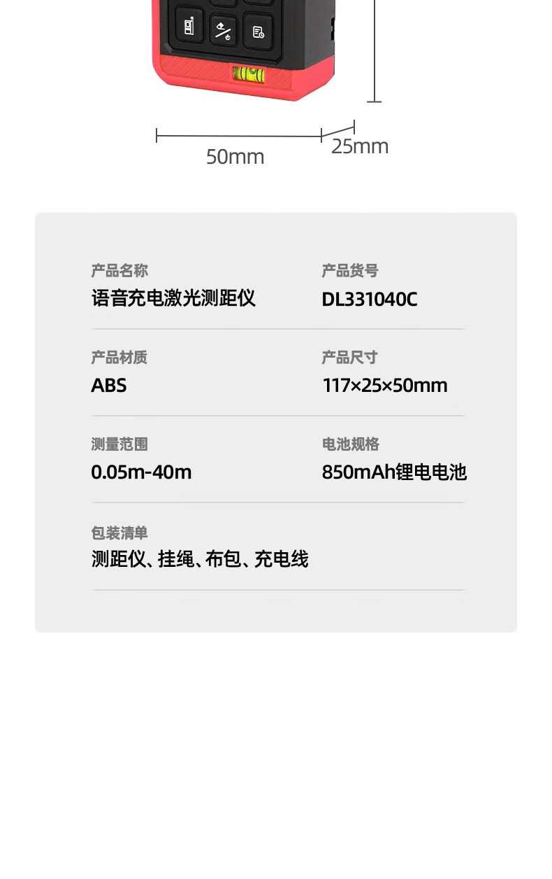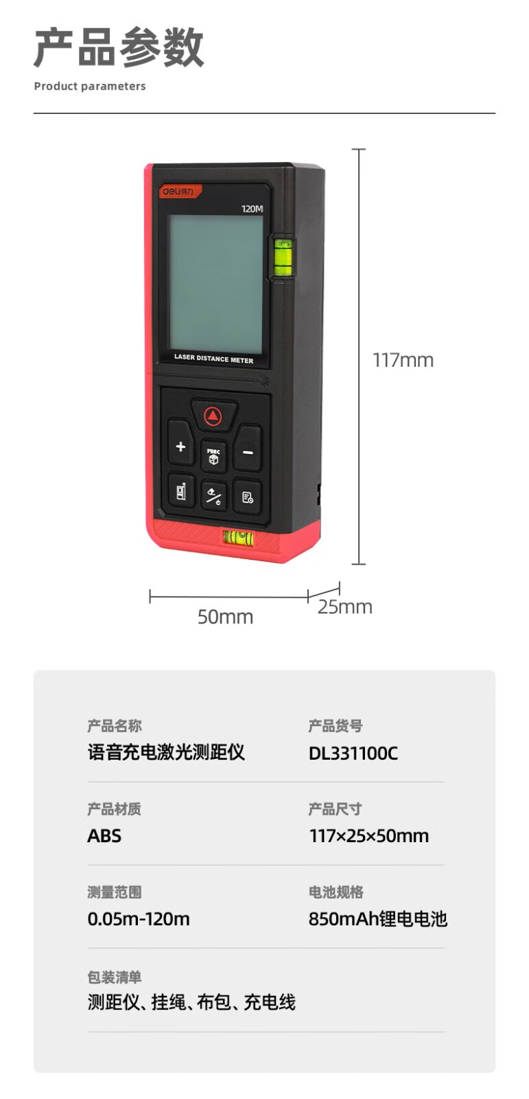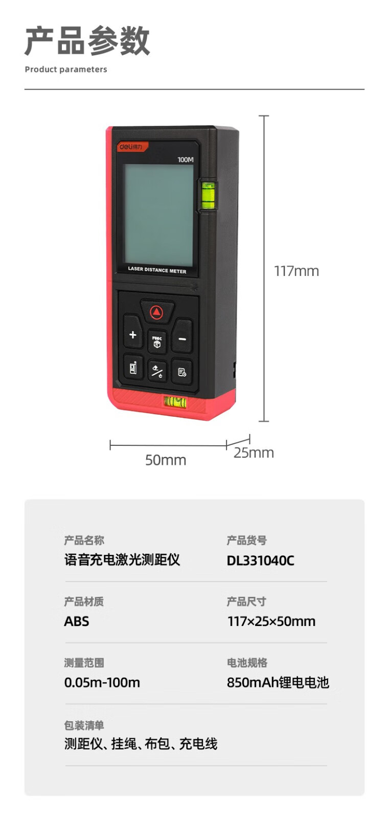 Deli laser range finder voice rechargeable handheld infrared measuring ruler electronic ruler high precision measuring room instrument measuring instrument rechargeable voice laser range finder 60m