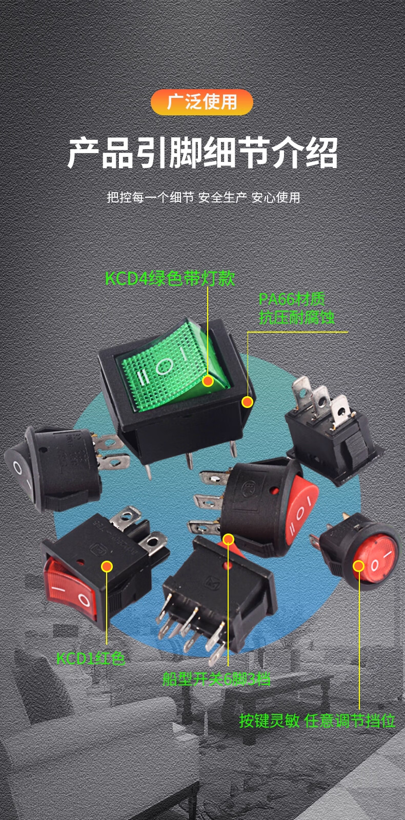 ZAVE boat switch KCD4 4-pin 2-speed red light (1 piece)
